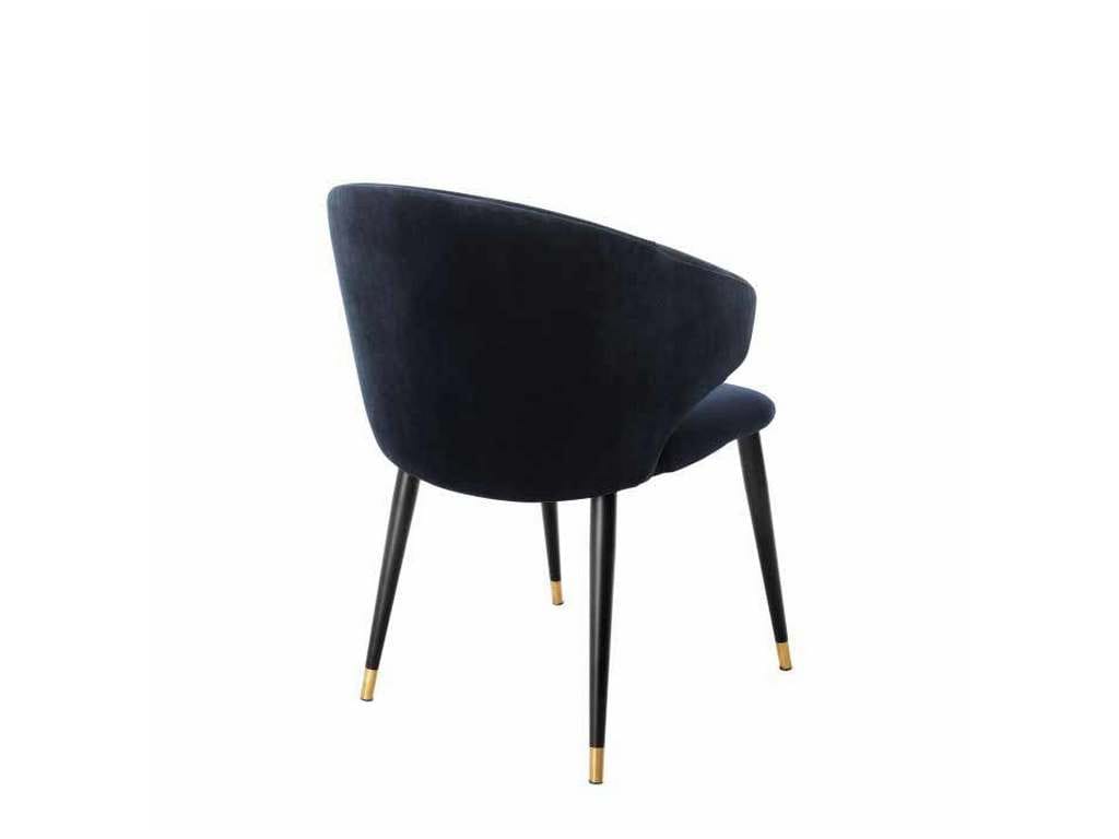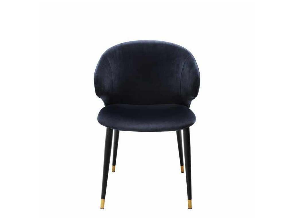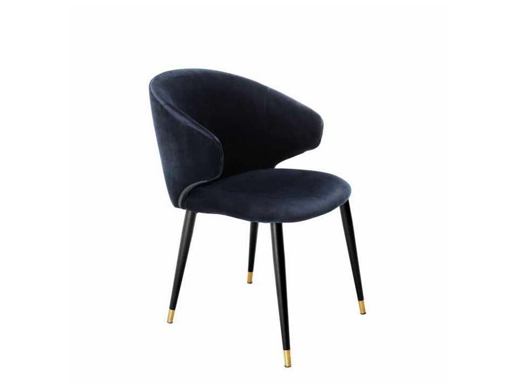 Product Description: Eichholtz A112778 Dining Chair Volante - Add Mid-Century Modern appeal to your dining room or kitchen with the Volante Dining Chair. Its black frame with sleek tapered legs and brass caps features a seating and backrest in a Savona midnight blue upholstery. Team up different chairs from this series for a charming vintage style!