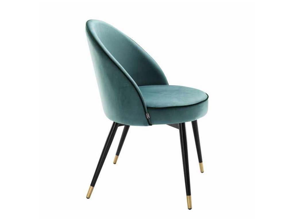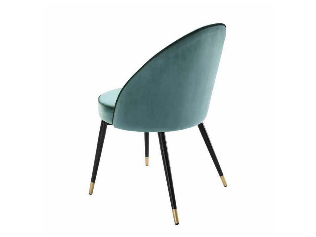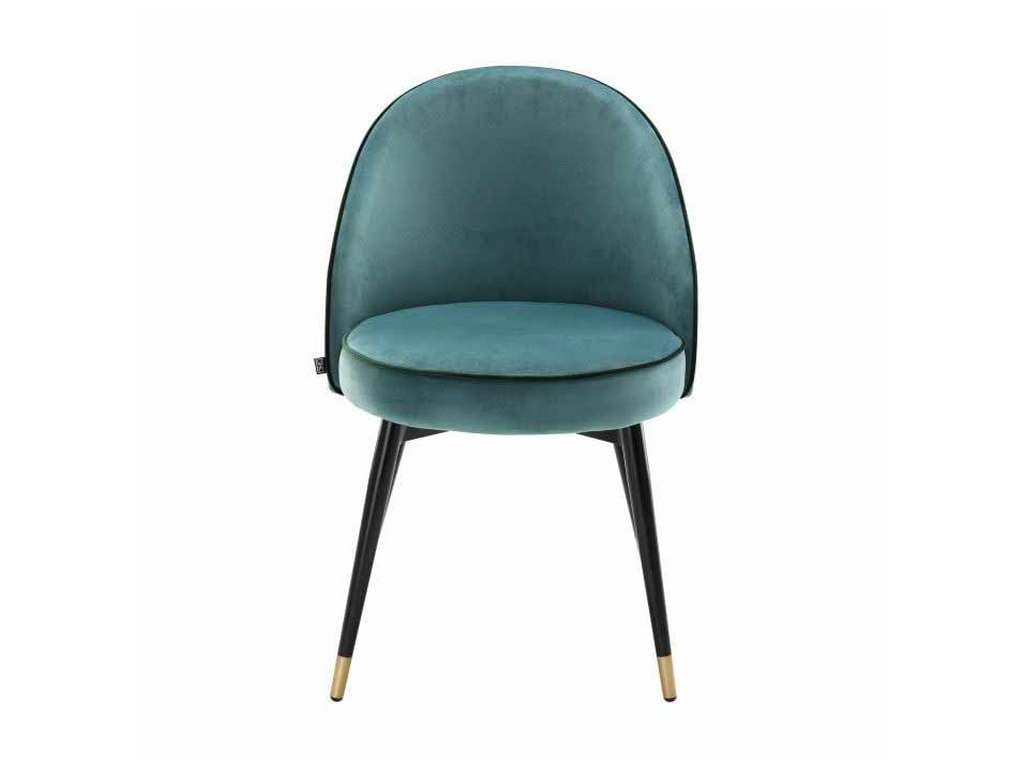 Product Description: Eichholtz A113123 Dining Chair Cooper Set of 2 - Add Mid-Century Modern appeal to your dining room or kitchen with this stylish set of 2 Cooper Dining Chairs. Each chair is characterised by a seating and backrest in a Roche turquoise velvet upholstery with dark green piping, tapered black legs and brass caps. Team up different chairs from this series for an opulent style!