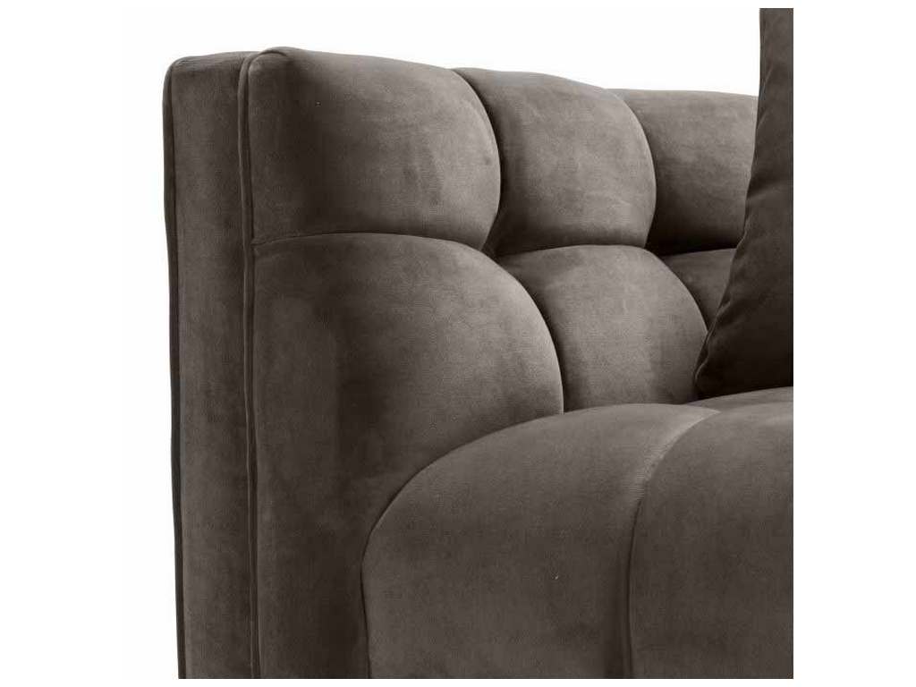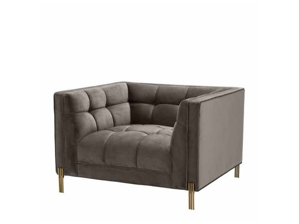 Product Description: Eichholtz A113196 Chair Sienna - The sumptuous Sienna Chair pairs comfort with high-style. Featuring a t-shape, its backrest forms a whole with the armrests. This elegant modern armchair comes in a tufted upholstery in mellow Savona grey velvet, with two square throw cushions. Gold finished legs add extra glamour to its luxurious look.