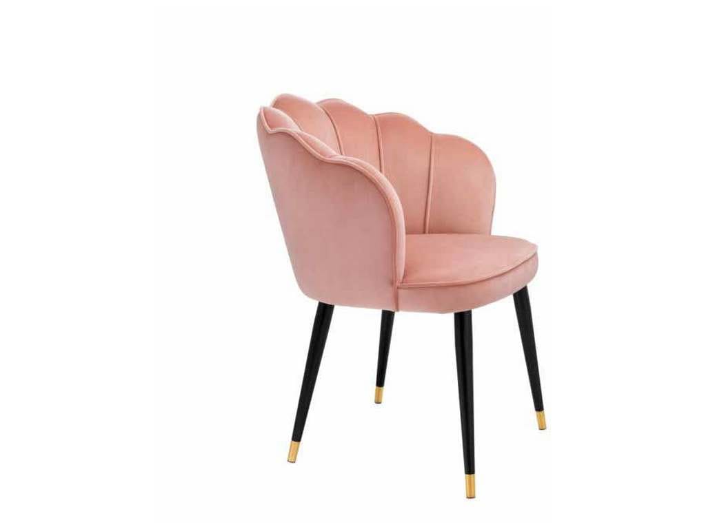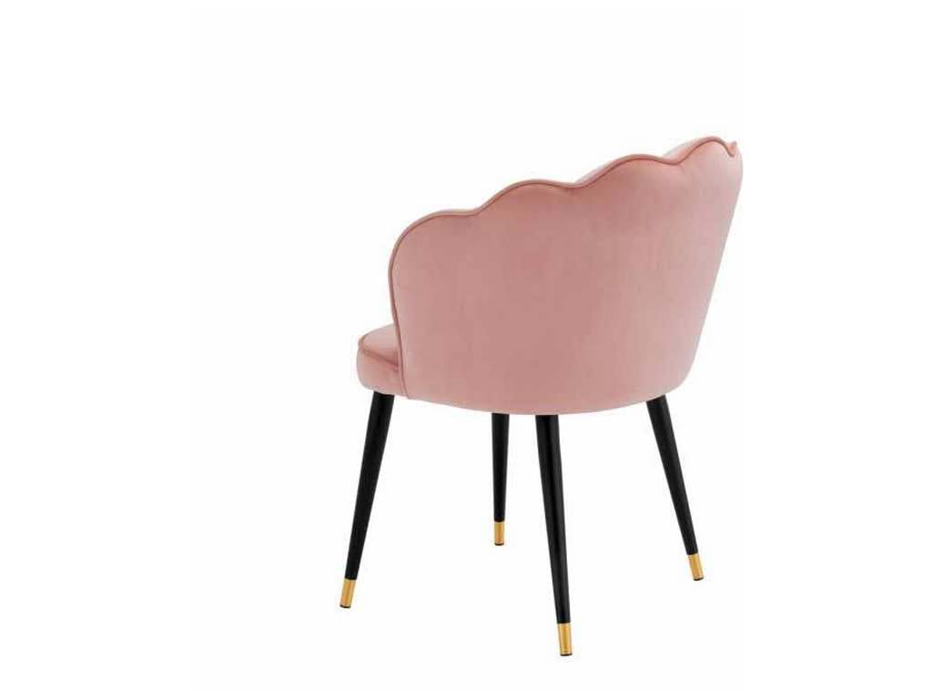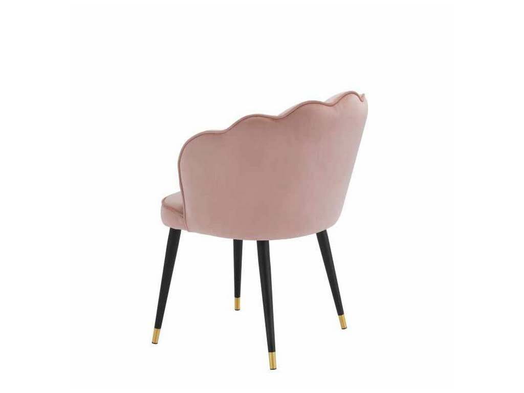 Product Description: Eichholtz A113542 Dining Chair Bristol - Cocoon yourself in the Bristol Dining Chair. With its scalloped back, this elegant clamshell-shaped dining chair oozes vintage style. The chic Savona nude velvet upholstery with piping and the tapered black legs with gold caps complete the luxurious Art Deco look.