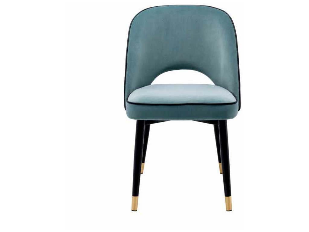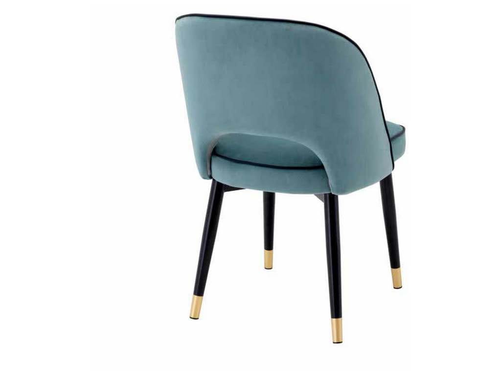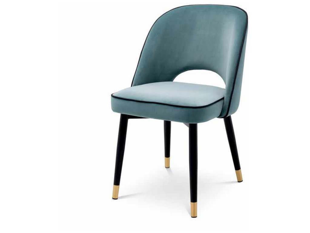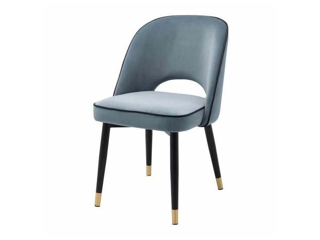 Product Description: Eichholtz A114301 Dining Chair Cliff Set of 2 - Create a wow-worthy dining room with the Cliff Dining Chair in Savona blue velvet. Featuring black tapered legs with gold caps, the solid frame holds an armless back that is open at the bottom before the seat. Its stylish silhouette is accentuated with black faux leather piping.