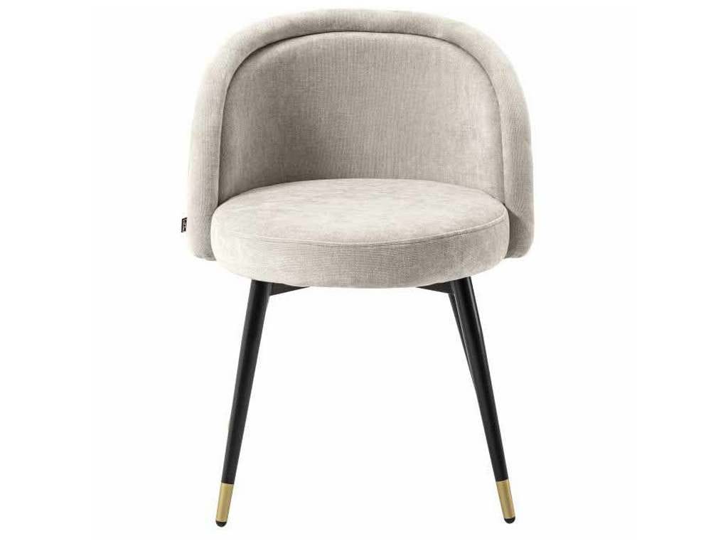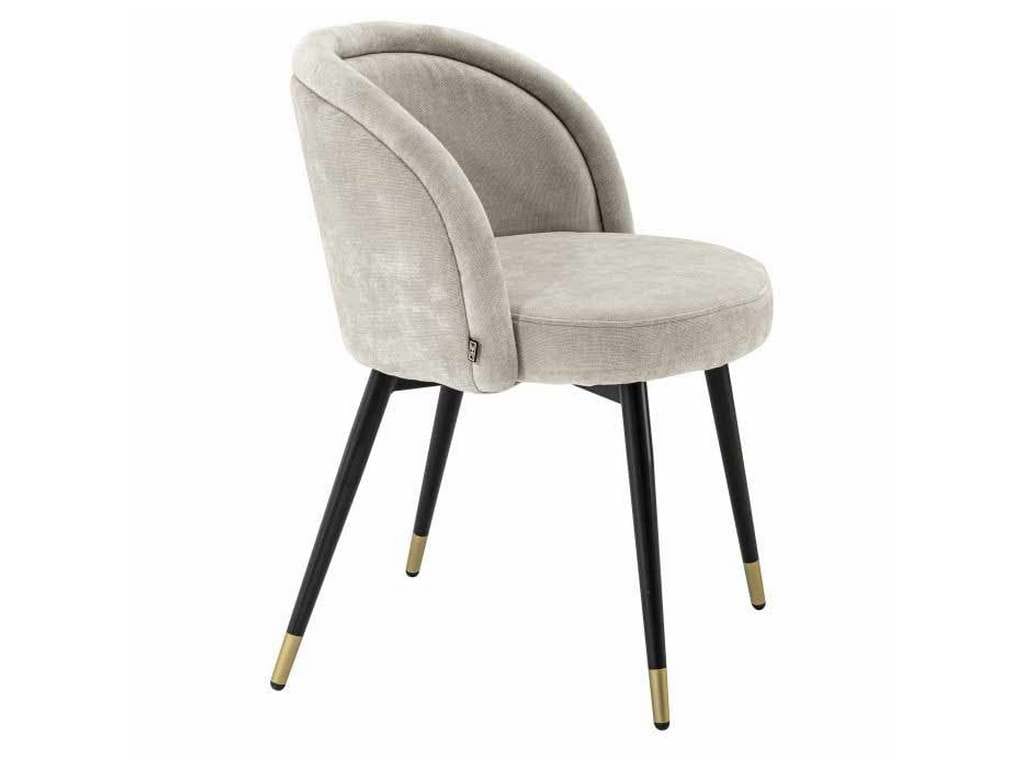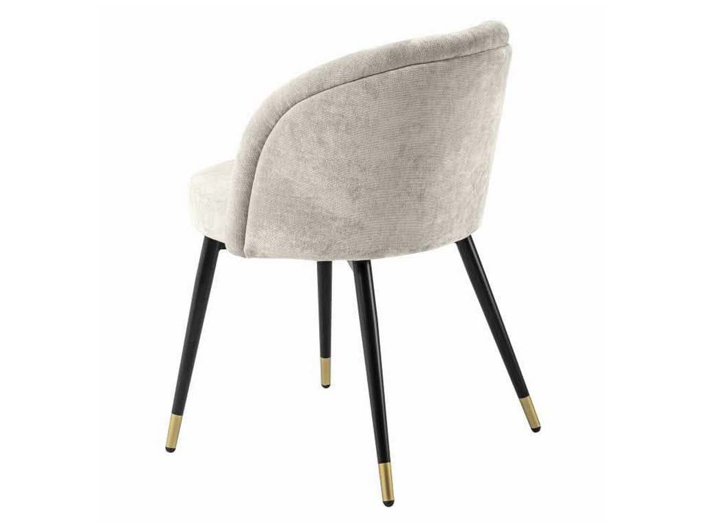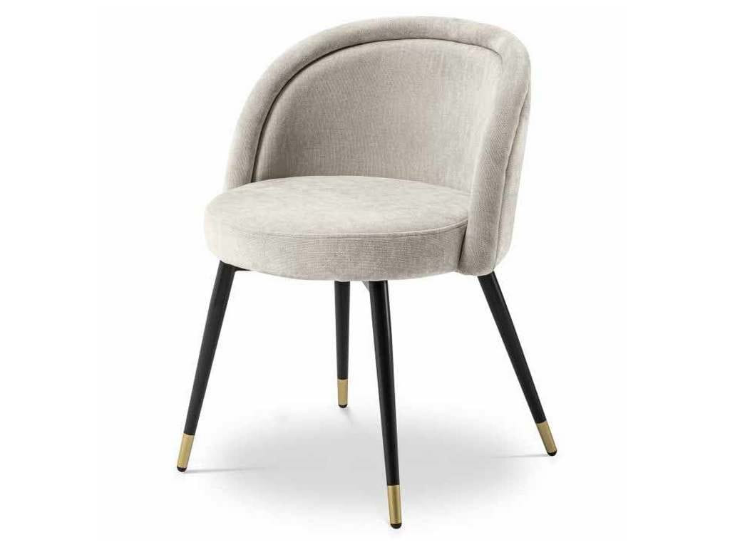 Product Description: Eichholtz A114859 Dining Chair Chloe Set of 2 - Transform your home interior in a blink with Dining Chair Chloe, which comes as a set of two. Perfect for your diving room, bedroom and study, this chair is as comfortable as it is beautiful. The tapered black legs are finished with brass caps and the Clarck sand upholstery stylishly rounds off the retro look.