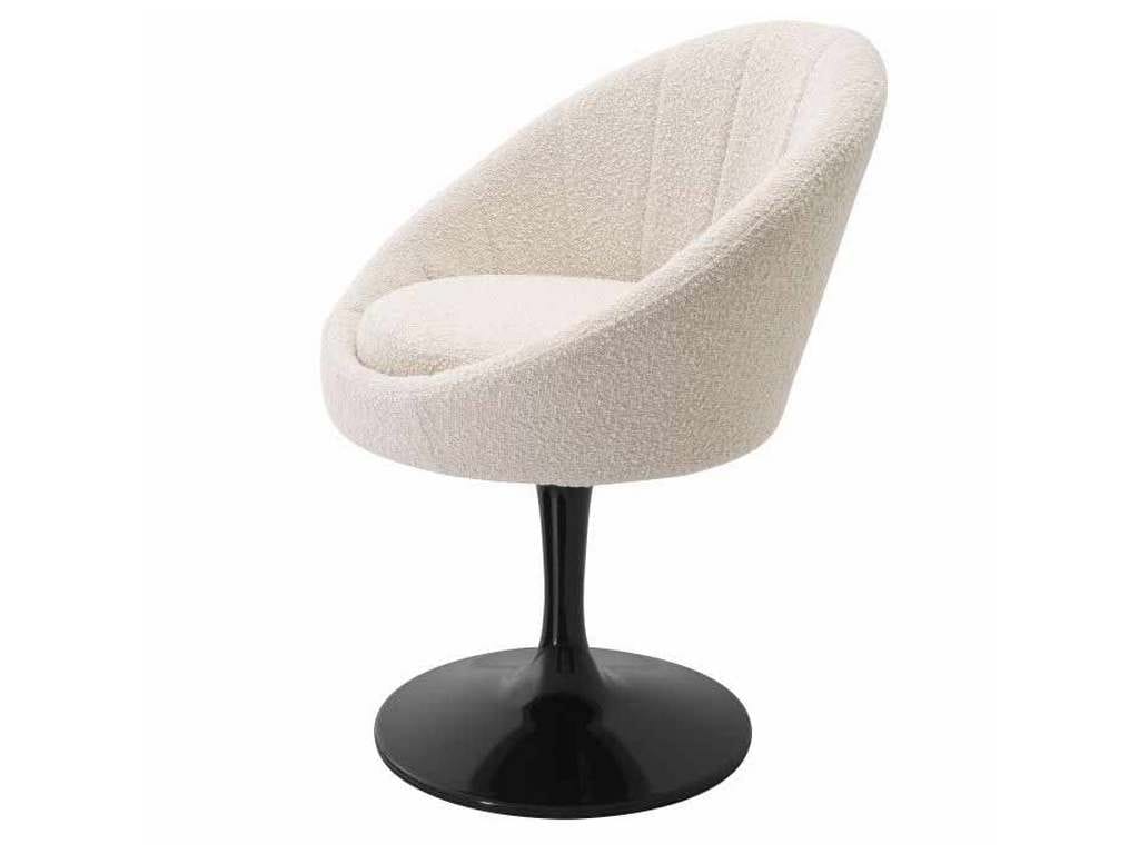 Product Description: Eichholtz A114953 Dining Chair O Neill - Oozing the aesthetics of the 1960s, Dining Chair O'Neill will bring a retro feel to your home. This fabulous swivel chair has a central leg that ends in a bell-shaped base. The tub-shaped seat is upholstered in a lush Boucle cream fabric.