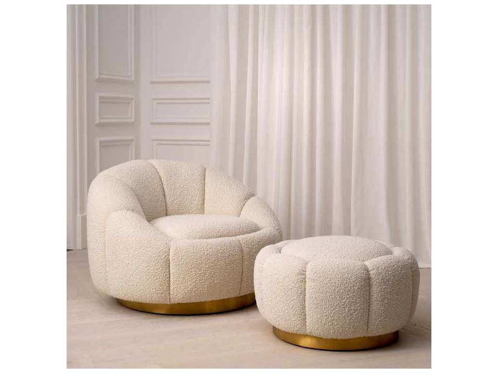 Product Description: Eichholtz A115620 Ottoman Inger - Designed with organic shapes in mind, Ottoman Inger boasts flower power. Inspired by a daisy, it features a Boucle cream upholstery accentuated by deep stitching. This inviting pouffe demonstrates that boucle pairs incredibly with curvilinear shapes. Perfect for pairing with the Inger Swivel Chair.