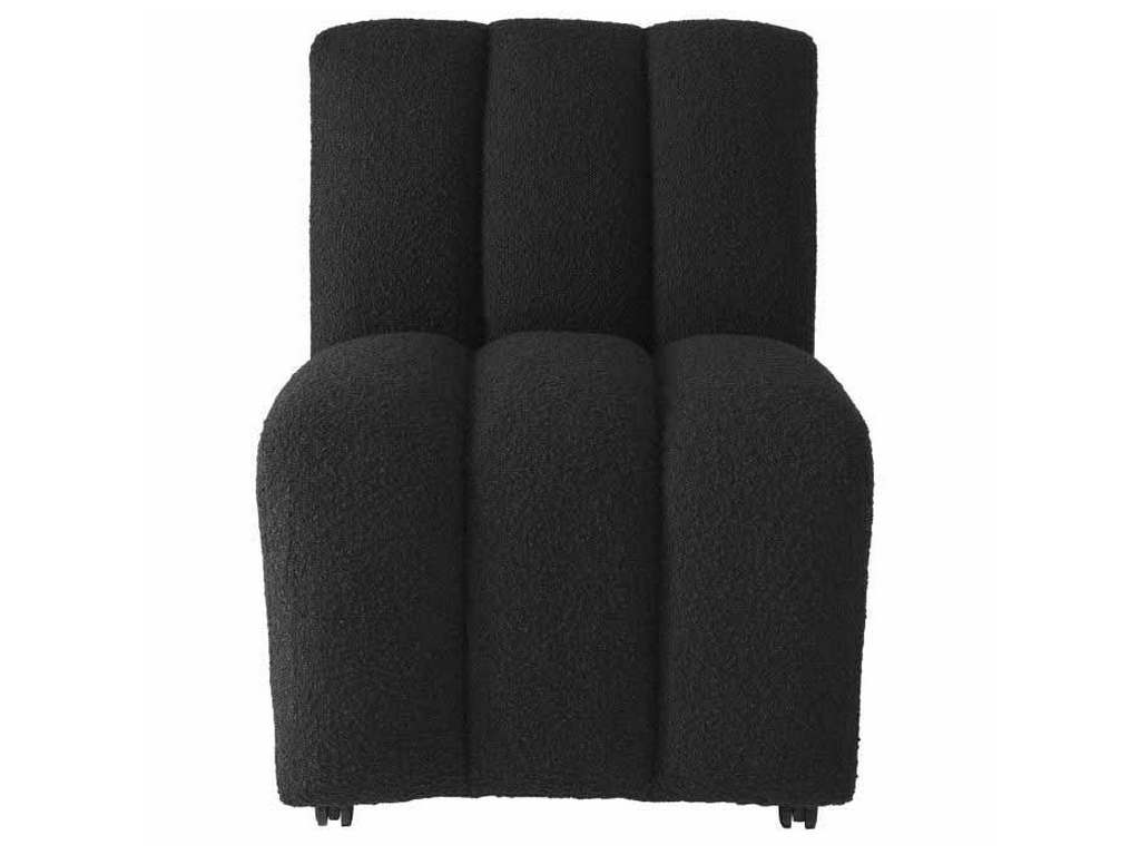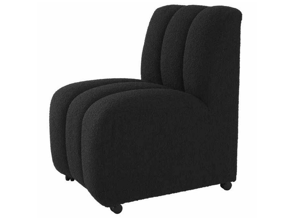 Product Description: Eichholtz A115977 Dining Chair Kelly - Upholstered in Boucle black, Dining Chair Kelly will bring lots of charm and warmth to your living room. Deep channel stitching gives this distinctive and comfortable dining chair a sumptuous appeal.