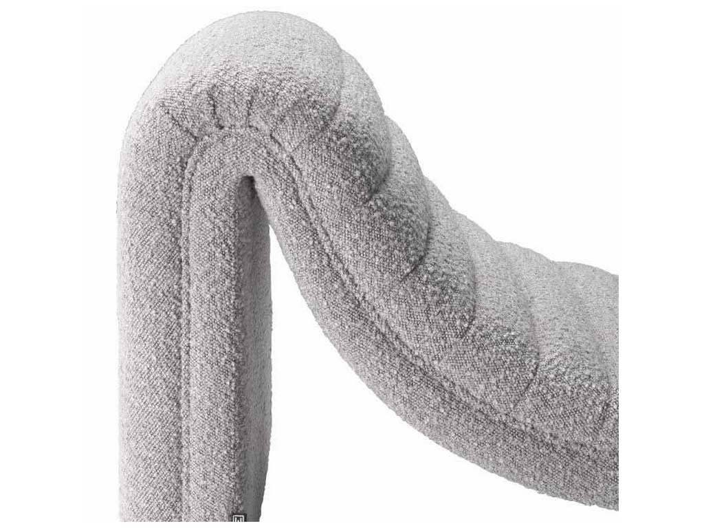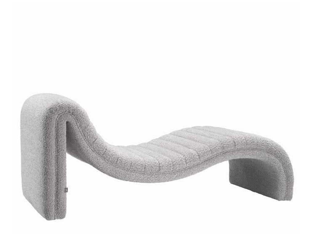 Product Description: Eichholtz A116132 Chaise Longue Pioneer - The sculptural and inviting Pioneer chaise lounge provides the perfect seat for any occasion. Boasting a contemporary sleek design with clean lines, a curved seat and an arched back, this chaise finished in boucle grey is the ideal addition to a bedroom or living room.