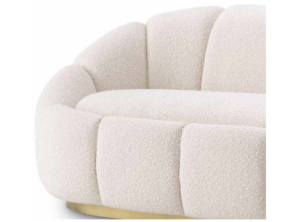 Product Description: Eichholtz A116448 Sofa Inger - Designed with organic shapes in mind, and provided with a Boucle cream upholstery, Sofa Inger will give your interior a natural look and feel. The curvilinear shape is accentuated by deep stitching, whilst the cream-coloured fabric is underlined by a brushed brass base. Perfect for pairing with other pieces from our opulent Inger series.