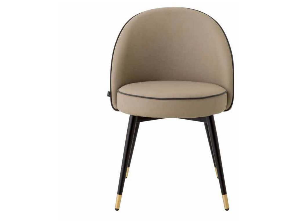 Product Description: Eichholtz A116571 Dining Chair Cooper Set of 2 - Add Mid-Century Modern appeal to your dining room or kitchen with this stylish set of 2 Cooper Dining Chairs. Each chair is characterised by a seating and backrest in a beige faux-leather upholstery with grey faux-leather piping, tapered black legs and brass caps.