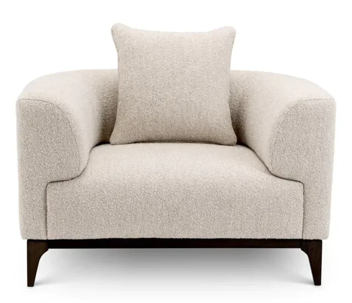 Product Description: Eichholtz A118862 Chair Brannan - Experience the understated elegance of the Eichholtz Chair Brannan Bouclé Chalk White. Upholstered in plush bouclé fabric in a serene chalk white shade, this armchair exudes tranquility and sophistication. The sleek black base provides a striking contrast, enhancing its modern appeal. Elevate your living space with the timeless charm of the Chair Brannan, where comfort meets refined style effortlessly.