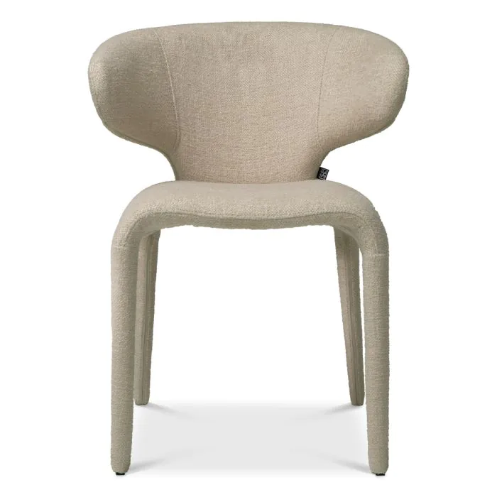 Product Description: Eichholtz A119418 Dining Chair Josephine - Rediscover elegance with the Dining Chair Josephine in Renato Ecru. This luxurious piece features a sumptuous fabric with stain resistance finish, fully upholstered to meld seamlessly with your refined décor. Its graceful curves and soft neutral tone promise to envelop your dining experience in sophisticated comfort, appealing to those with a taste for grandeur.