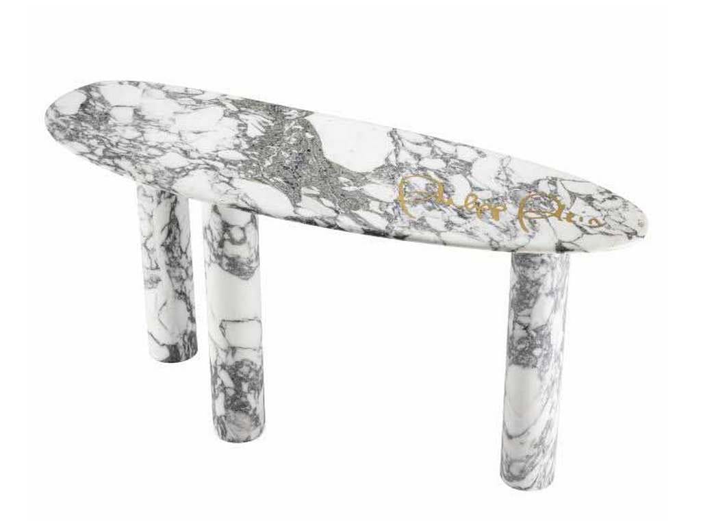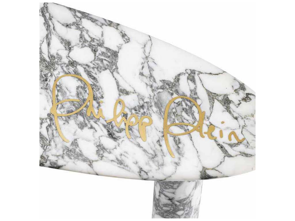 Product Description: Eichholtz PP0046 Console Table Forte - The Forte console table has been carved in white Cararra marble by master craftsmen. Its feminine, voluptuous organic curves give this table a sense of soft modernity, finished with a dynamic Philipp Plein golden signature.