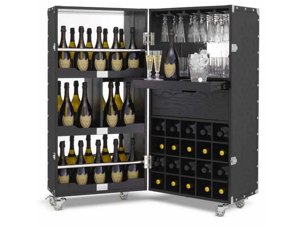 Product Description: Eichholtz PP0071 Phillipps Bar - It's like the wildest night on the move, the Philipp's Bar cocktail cabinet, built on casters and constructed with black PVC and lined with custom PP logo velvet will contain everything needed to get the party started.