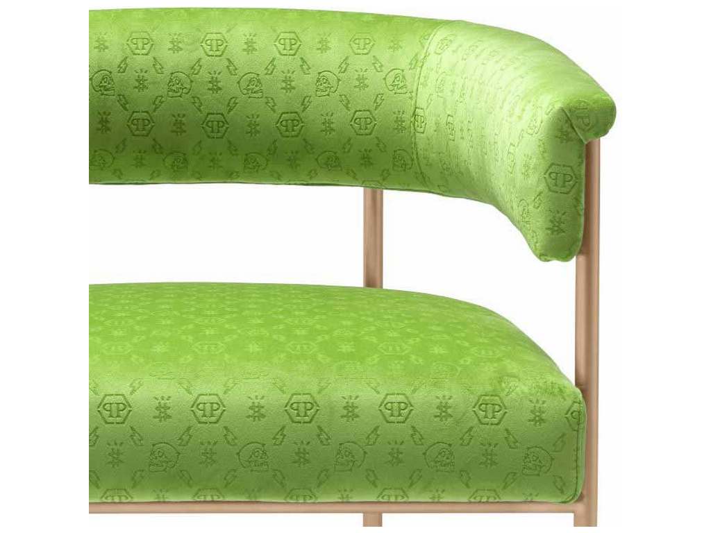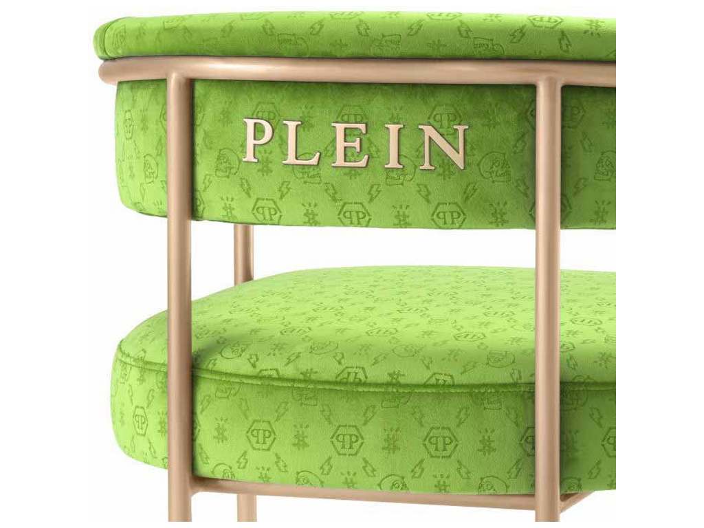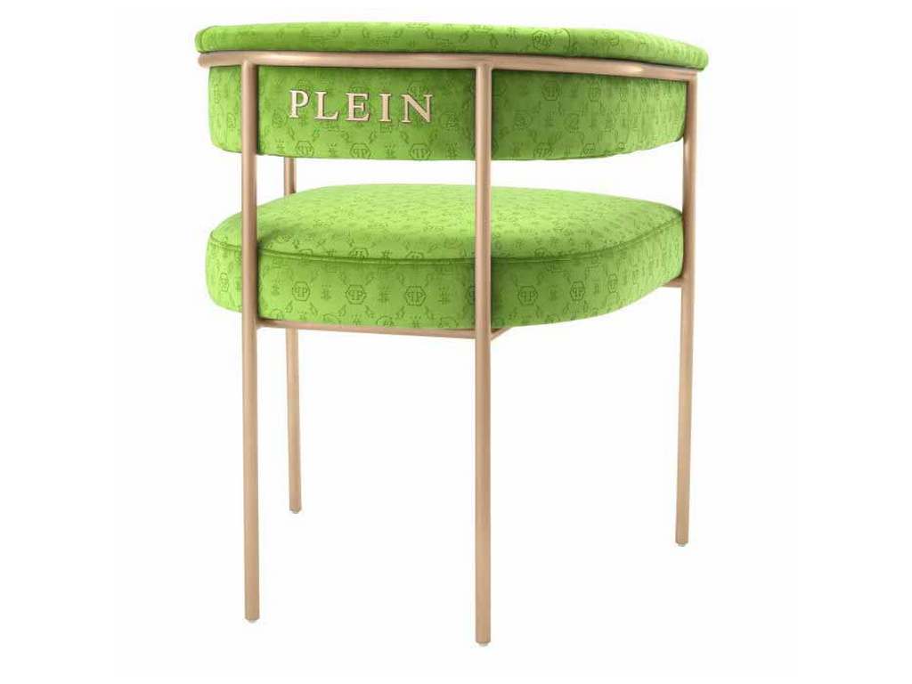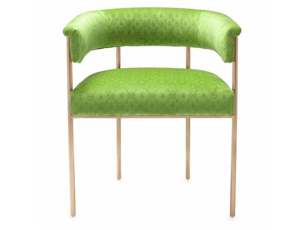 Product Description: Eichholtz PPA0040 Dining Chair Monogram - With decadent dining in mind, the Monogram dining chair upholstered in a mossy green laser-cut logo velvet feels at one with nature against the warm metal of the antique brass finish frame.