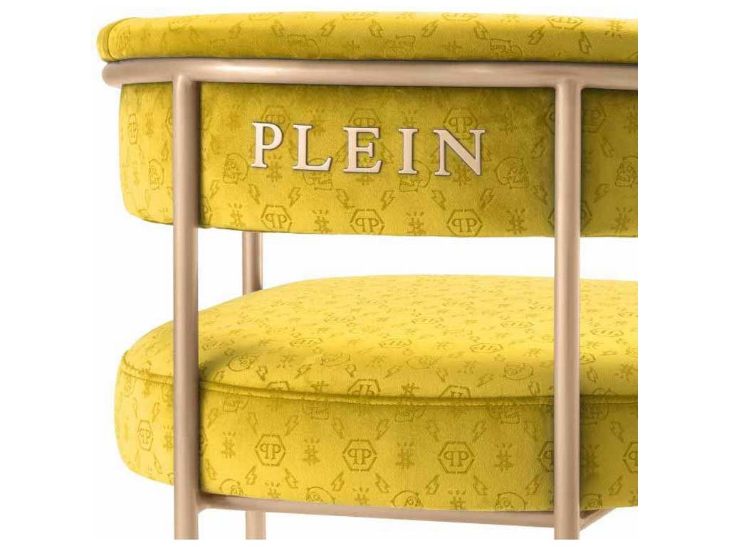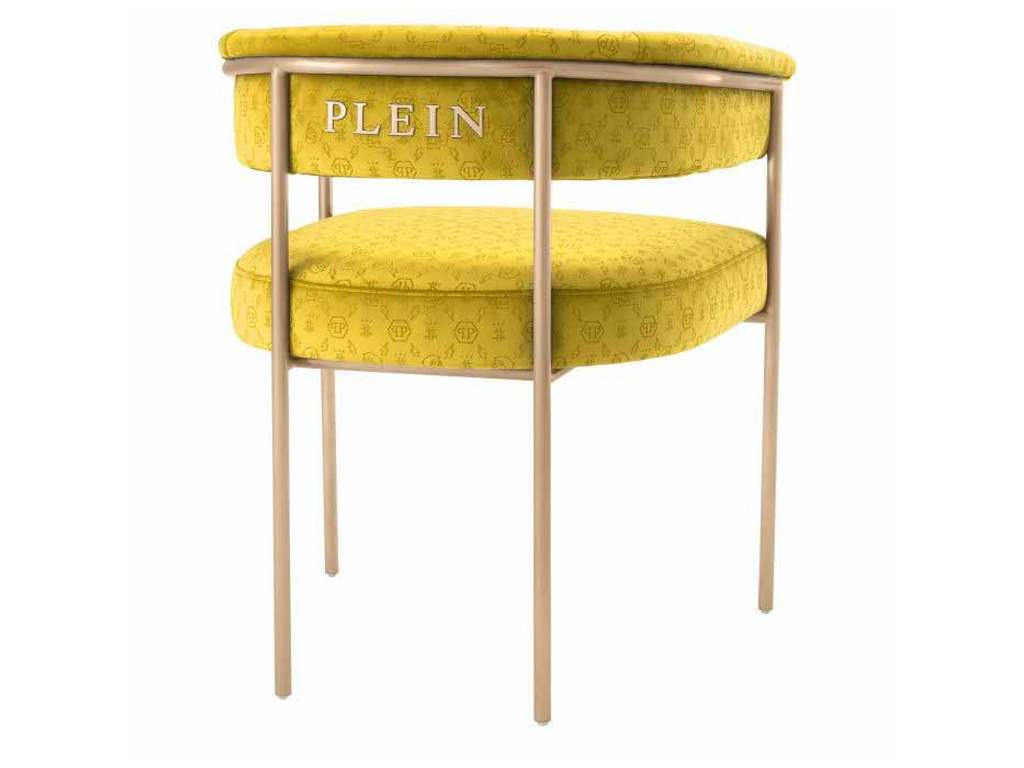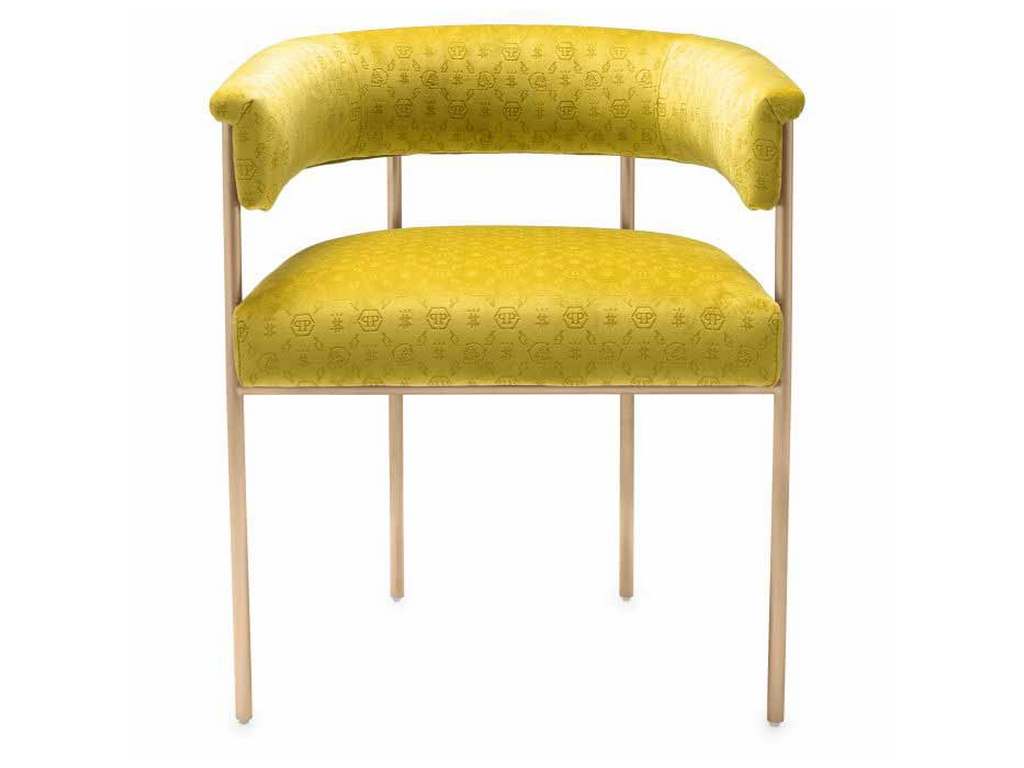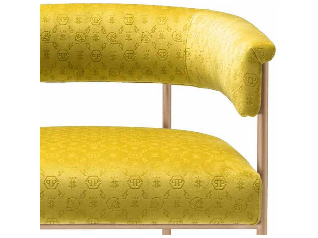 Product Description: Eichholtz PPA0042 Dining Chair Monogram - As hot as the summer sun, the Monogram dining chair in bright yellow featuring a custom laser-cut logo velvet upholstered backrest and seat with an antique brass finish frame is all about decadent dining.