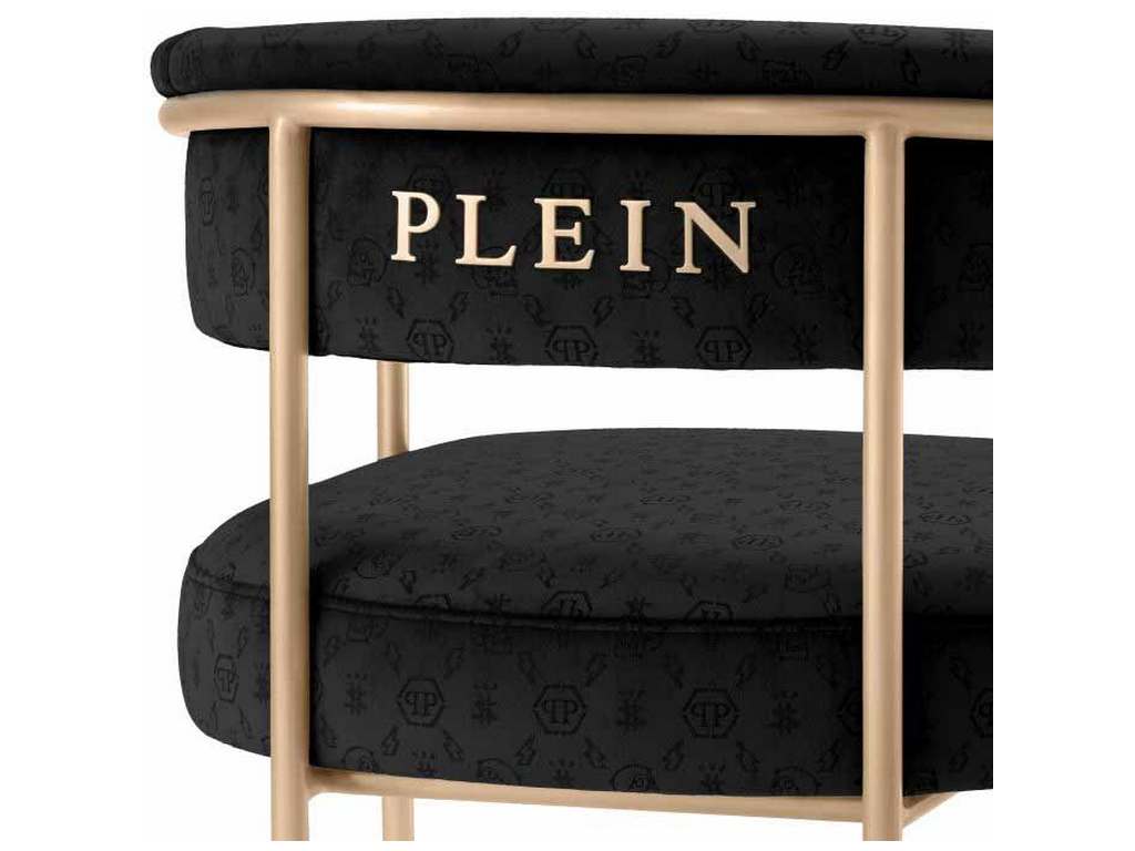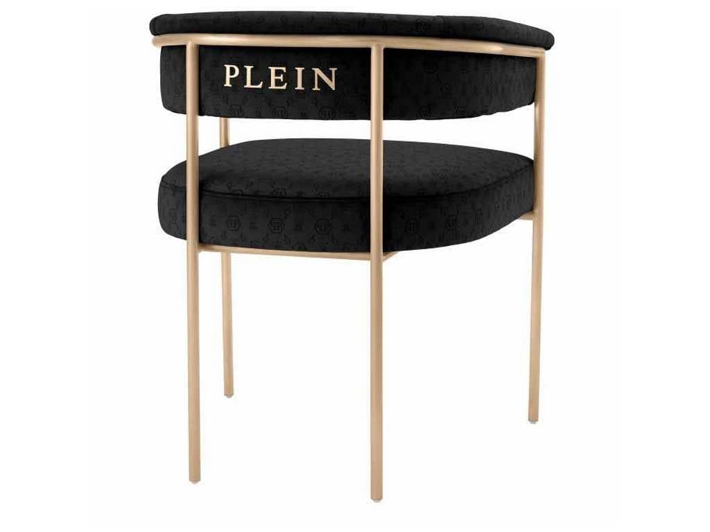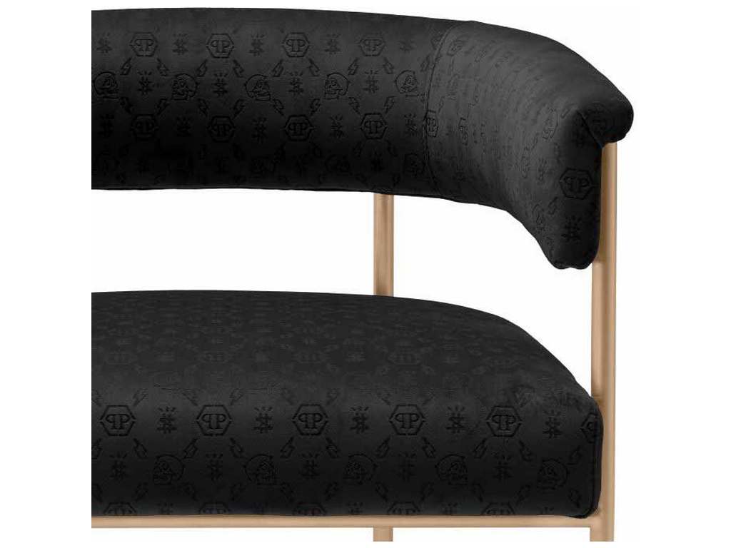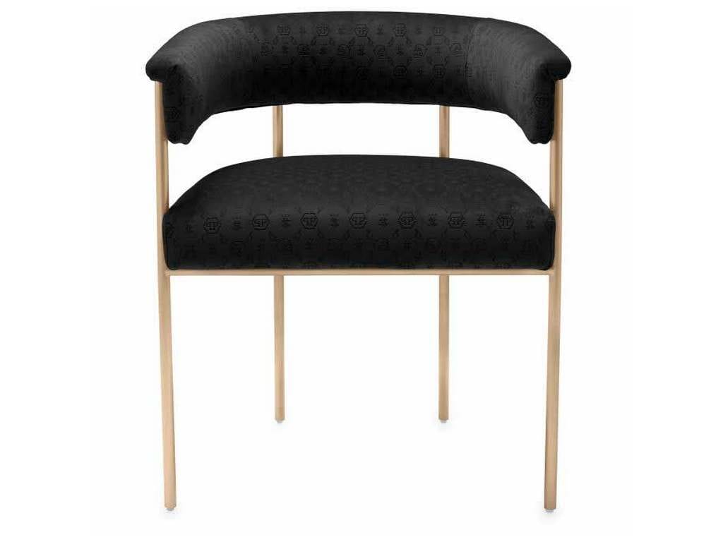 Product Description: Eichholtz PPA0171 Dining Chair Monogram - Making a dramatic statement, the Monogram dining chair in rich custom black laser-cut velvet with the hexagon PP logo, offers a sense of drama and decadence against its refined antique brass finish frame.