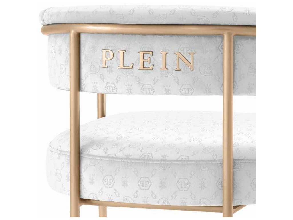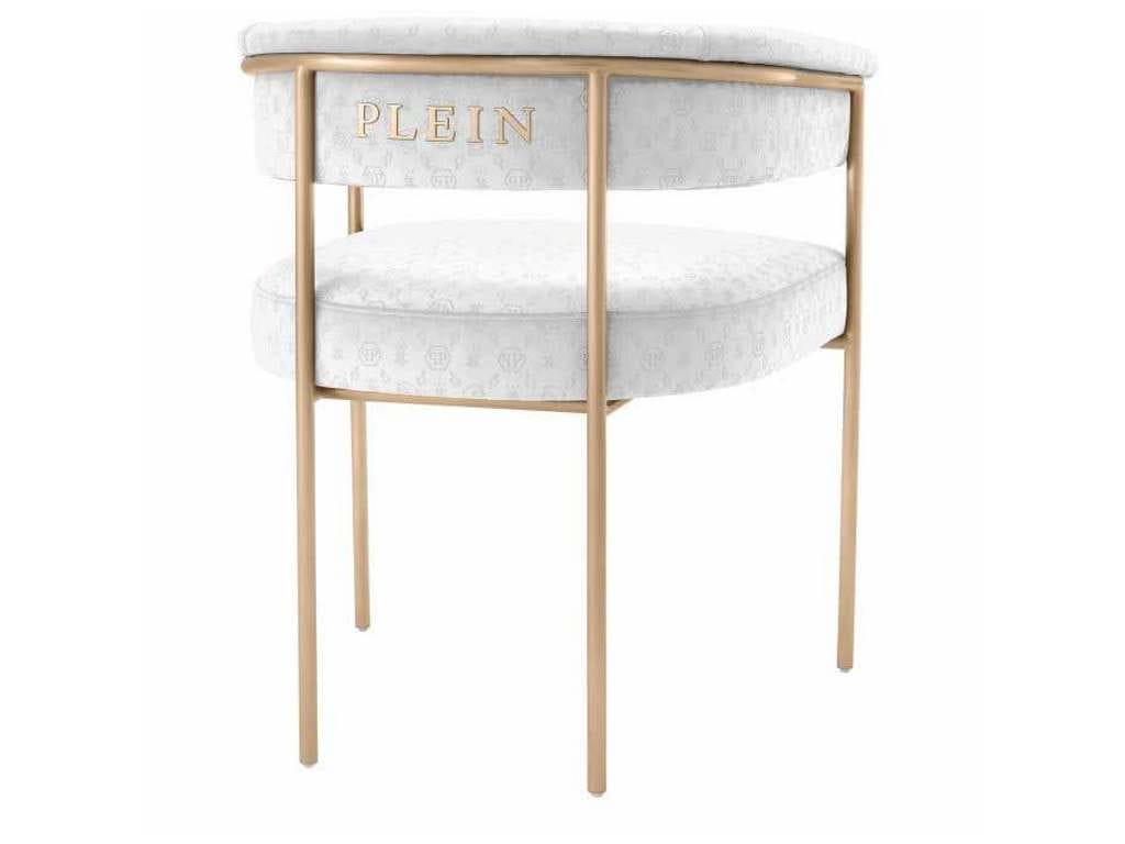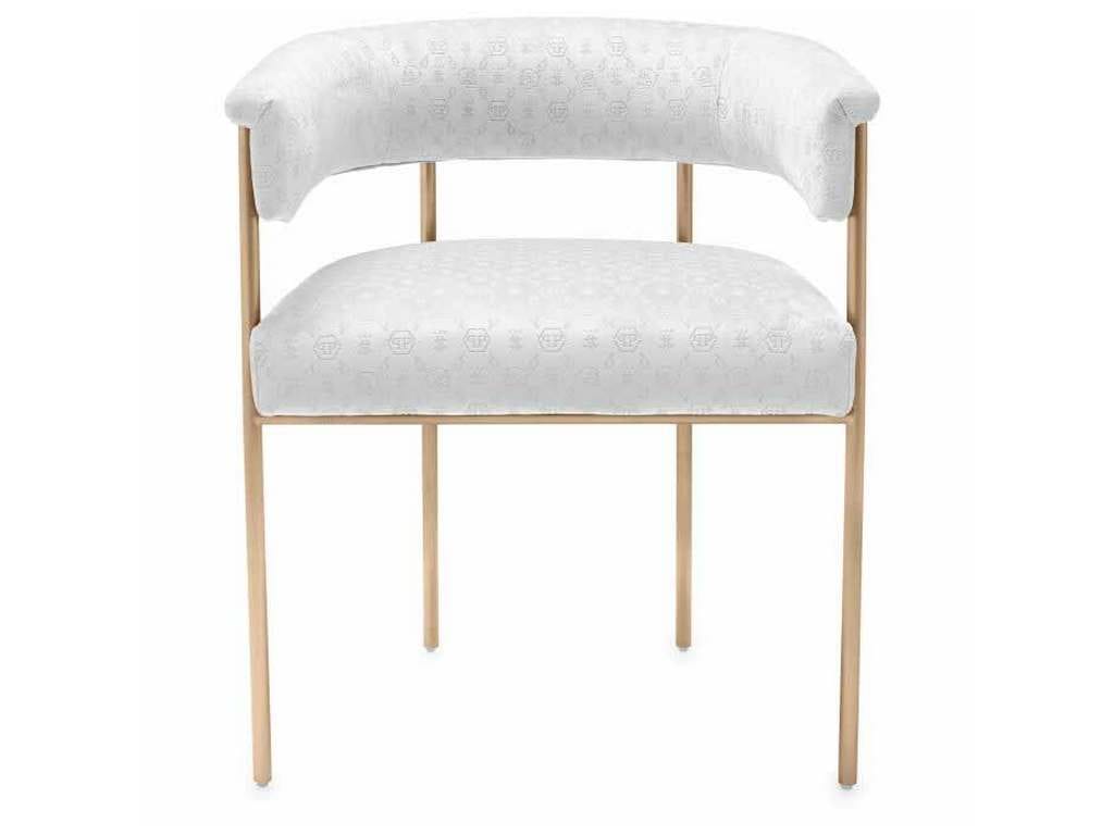 Product Description: Eichholtz PPA0172 Dining Chair Monogram - Like the purity of winter snow, the Monogram dining chair in white laser-cut logoed velvet feels fabulously decadent with its softly upholstered backrest and seat and antique brass finish frame.