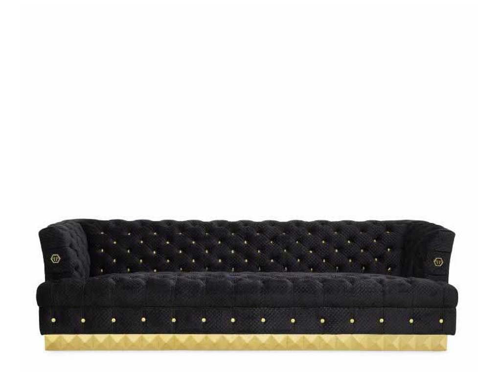 Product Description: Eichholtz PPA0310 Sofa Rockstud S - Loaded with fashion attitude, the quilted black velvet Rockstud sofa, punctuated with Philipp Plein signature gold studding, is inspired by the fabulous, decadent proportions of the 70s.