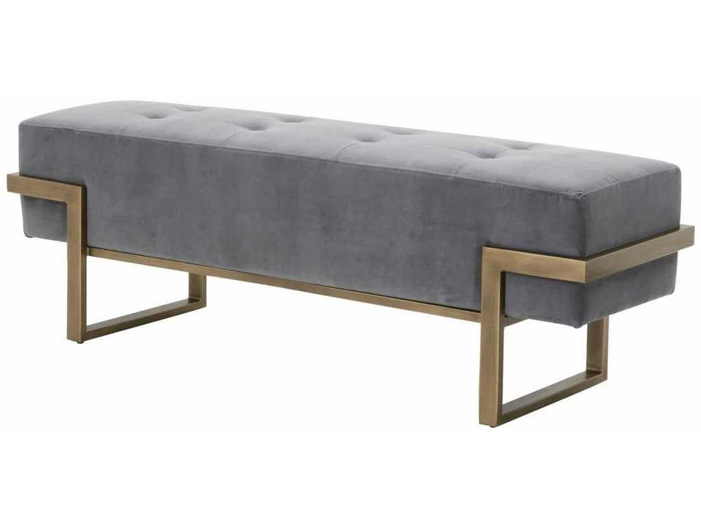 Product Description: Essentials For Living 4575.BGRY/BRA Fiona Upholstered Bench in Blush Gray Velvet Brass - Essentials For Living 4575.BGRY/BRA Fiona Upholstered Bench in Blush Gray Velvet, Brass - Decorative Metal Frame. Button Tufted Seat. High Density Foam.