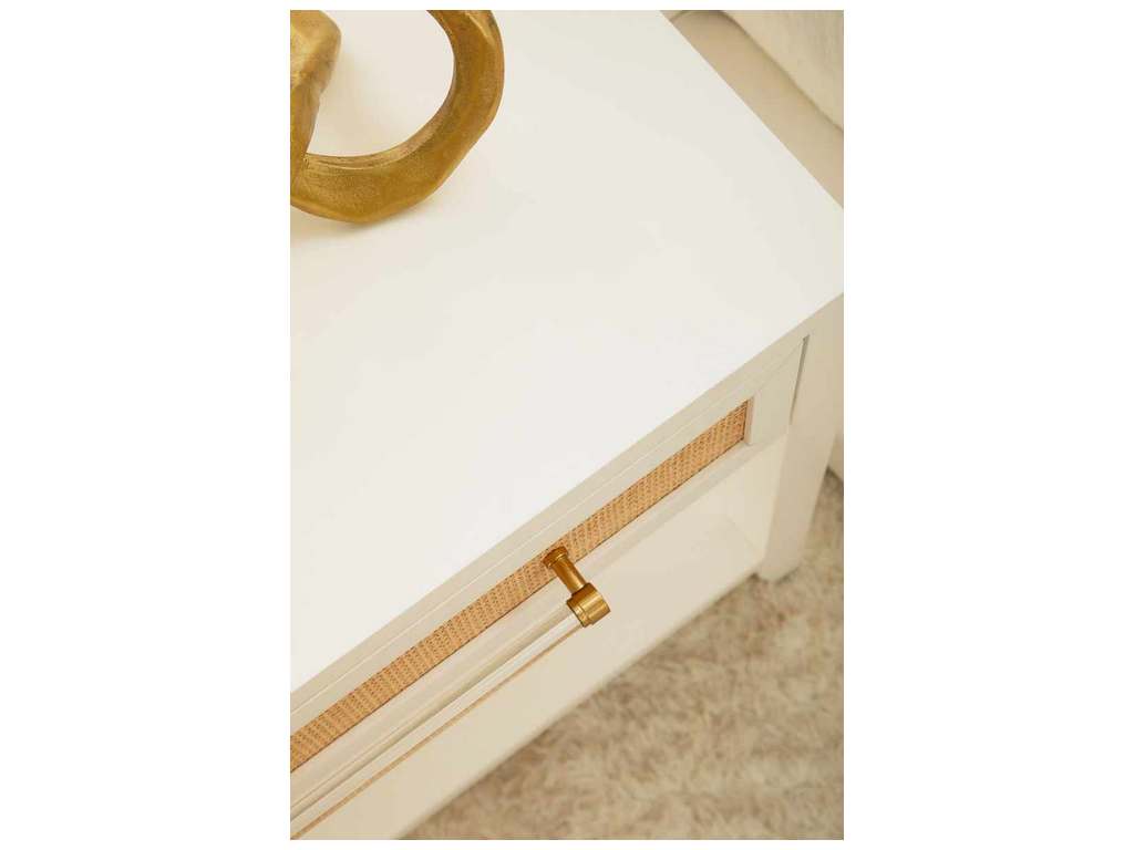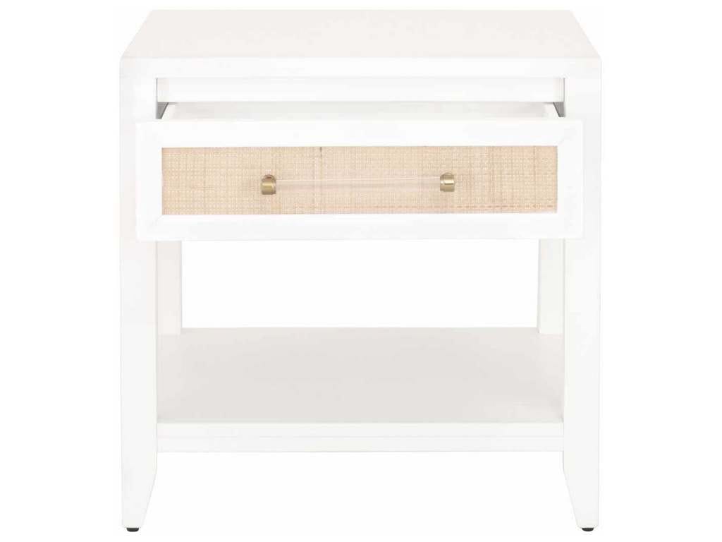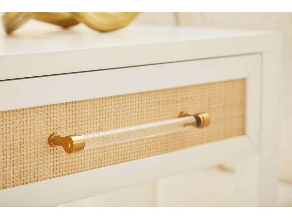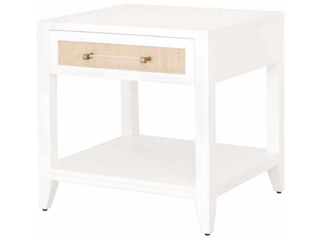 Product Description: Essentials For Living 6144.WHT/NAT Holland 1 Drawer Side Table in Matte White Natural Rattan - Essentials For Living 6144.WHT/NAT Holland 1 Drawer Side Table in Matte White, Natural Rattan - One Storage Drawer with Metal Glides. Natural Rattan Inlay Drawer Fronts. Brass & Acrylic Decorative Hardware. Hold-In Detent Prevents Drawer Roll Out. Lower Storage Shelf. Tip Kit Included.