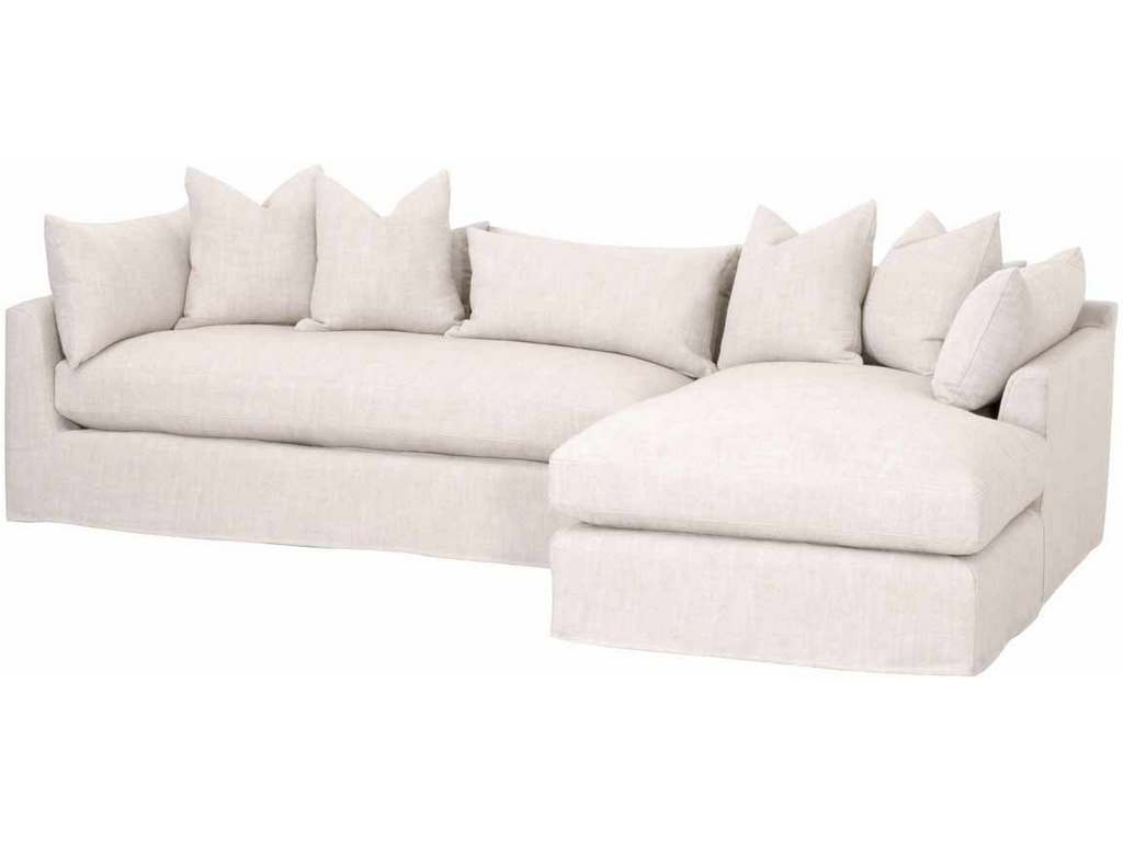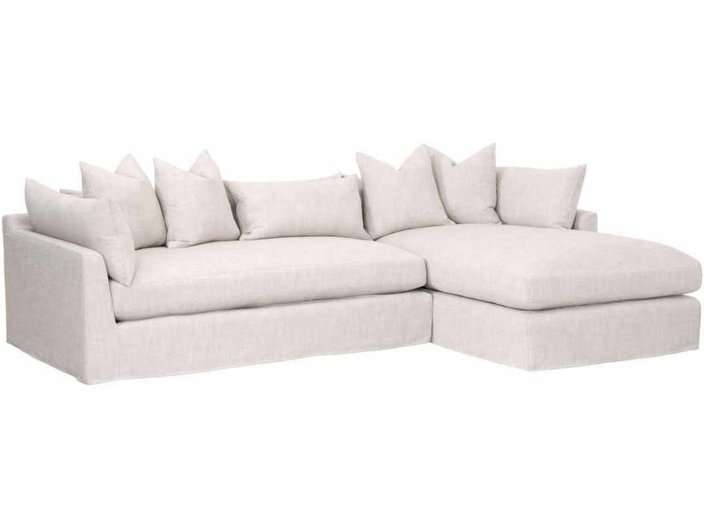 Product Description: Essentials For Living 6606-RF.BISQ Haven 110 inch Lounge Slipcover RF Sectional in Bisque Espresso - Reversible Seat Cushion with Tie-Downs to Prevent Movement. 8-Way Hand Tied Suspension. Seat Cushion Fill: 50% Polyester, 50% Down. 4 Square Throw Pillows Included. 6 Rectangle Pillows Included. Pillows: 100% Down. Cover Cleaning Code: W-S. Removable Slipcover. Right Arm Facing Chaise. Undermount Metal Snap Style Connectors Included.