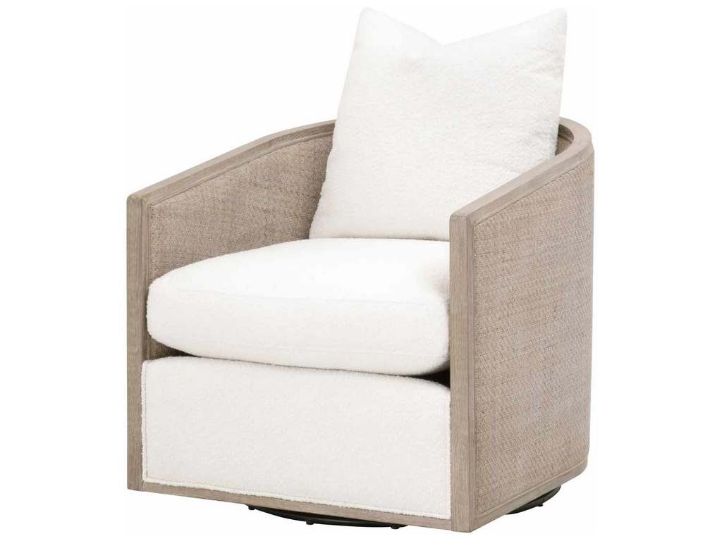 Essentials For Living McGuire Swivel Club Chair in Performance Boucle Snow Natural Gray Oak and Cane (SKU: 6643.BOU-SNO/NG) is available at Hickory Park Furniture in Hickory, NC and nationwide. We delivery anywhere.