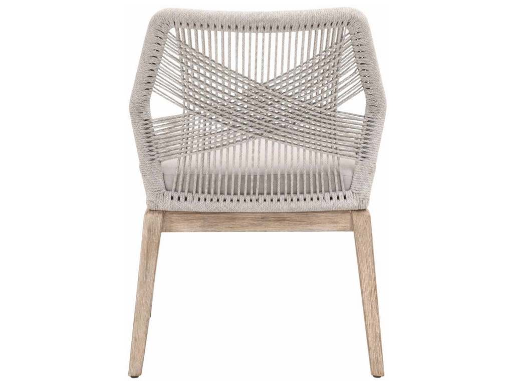 Product Description: Essentials for Living 6808KD.WTA/FPUM/NG Loom Dining Chair in Taupe and White Flat Rope Performance Pumice Natural Gray Mahogany - Essentials For Living 6808KD.WTA/FPUM/NG Loom Dining Chair in Taupe & White Flat Rope, Performance Pumice, Natural Gray Mahogany - Reinforced Dual Aluminum Frame System Offers Added Strength. New Thicker, Fixed Seat Cushion Offers Greater Comfort. Intricate Rope Weave Design. Aluminum Frame. Solid Mahogany Legs. KD Construction.