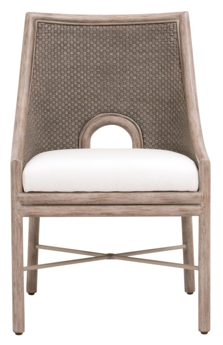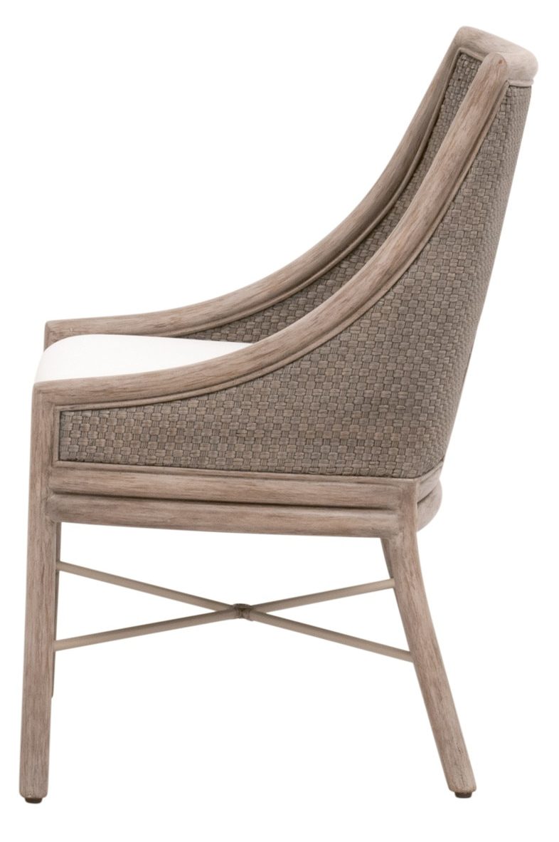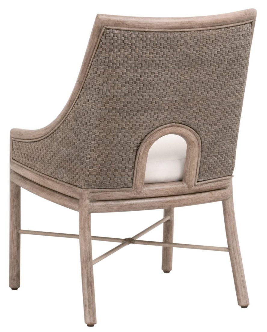 Product Description: Essentials For Living 6813.FGRY/LPPRL/FG Adamo Dining Chair - Basketweave Cabana Loom. High Performance, Quality Fabric. Fixed, Upholstered Seat Cushion. Solid Mahogany Wood Frame. "X" Stretcher Base Design. Metal Footrest Cover.