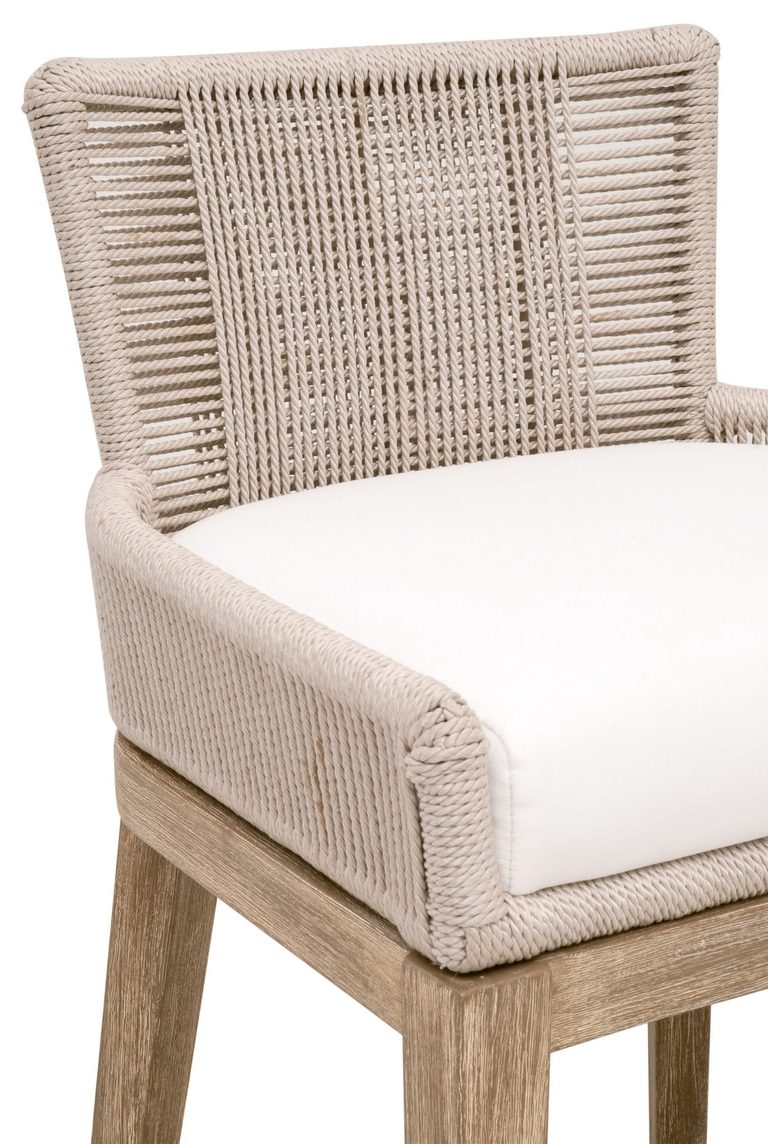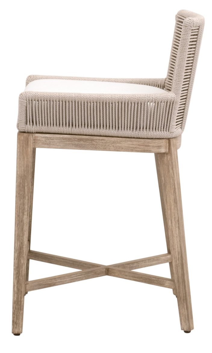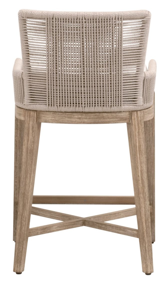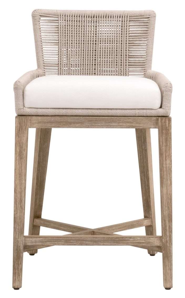 Product Description: Essentials For Living 6859CS.OYS/LPPRL/NG Overlay Counter Stool - Handwoven Rope Design. High Performance, Quality Fabric. Fixed Seat Cushion. "X" Stretcher Base Design. Solid Mahogany Wood Base. Footrest With Metal Plate Cover.