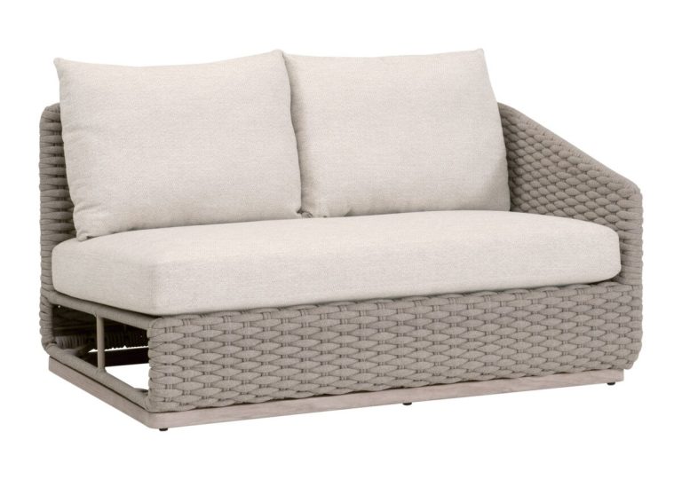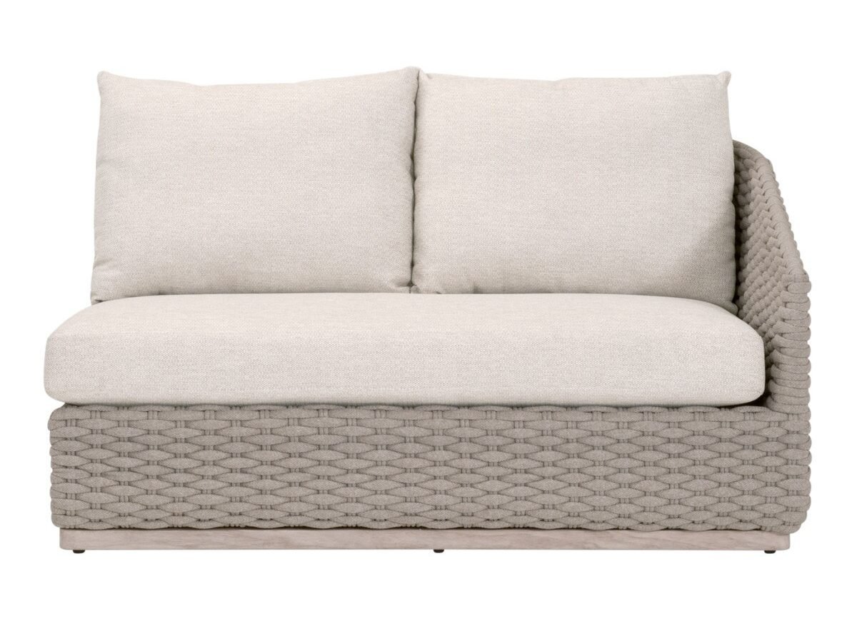 Product Description: Essentials For Living 6863-2S1R.TAU/ECR/W-ET Caspian Outdoor Modular Right Facing 1-Arm Sofa - Taupe Oval Rope, Performance Ecru Weave, Washed Ever Teak