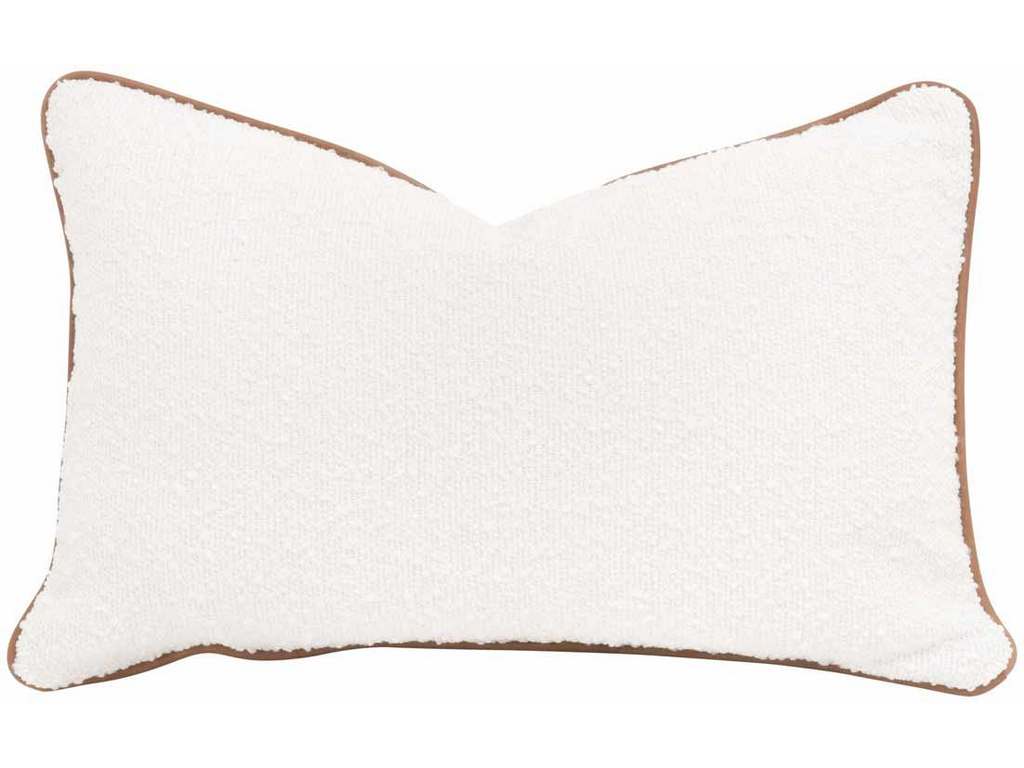 Product Description: Essentials for Living 7203-20.BOU-SNO/WB The Not So Basic 20 inch Essential Lumbar Pillow in Performance Boucle Snow Whiskey Brown Top Grain Leather Piping - Essentials For Living 7203-20.BOU-SNO/WB The Not So Basic 20 inch Essential Lumbar Pillow in Performance Boucle Snow, Whiskey Brown Top Grain Leather Piping - Stain-Resistant Treated Fabric. Top Grain Leather Piping. 100% Down Filled.