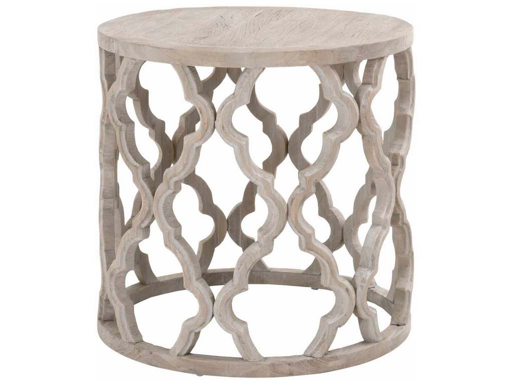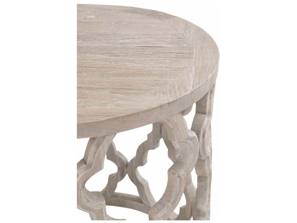Product Description: Essentials for Living 8028-L.SGRY-ELM Clover Large End Table in Smoke Gray Elm - Reclaimed Elm Wood. Plank Veneer Top. Intricate Carve Design.