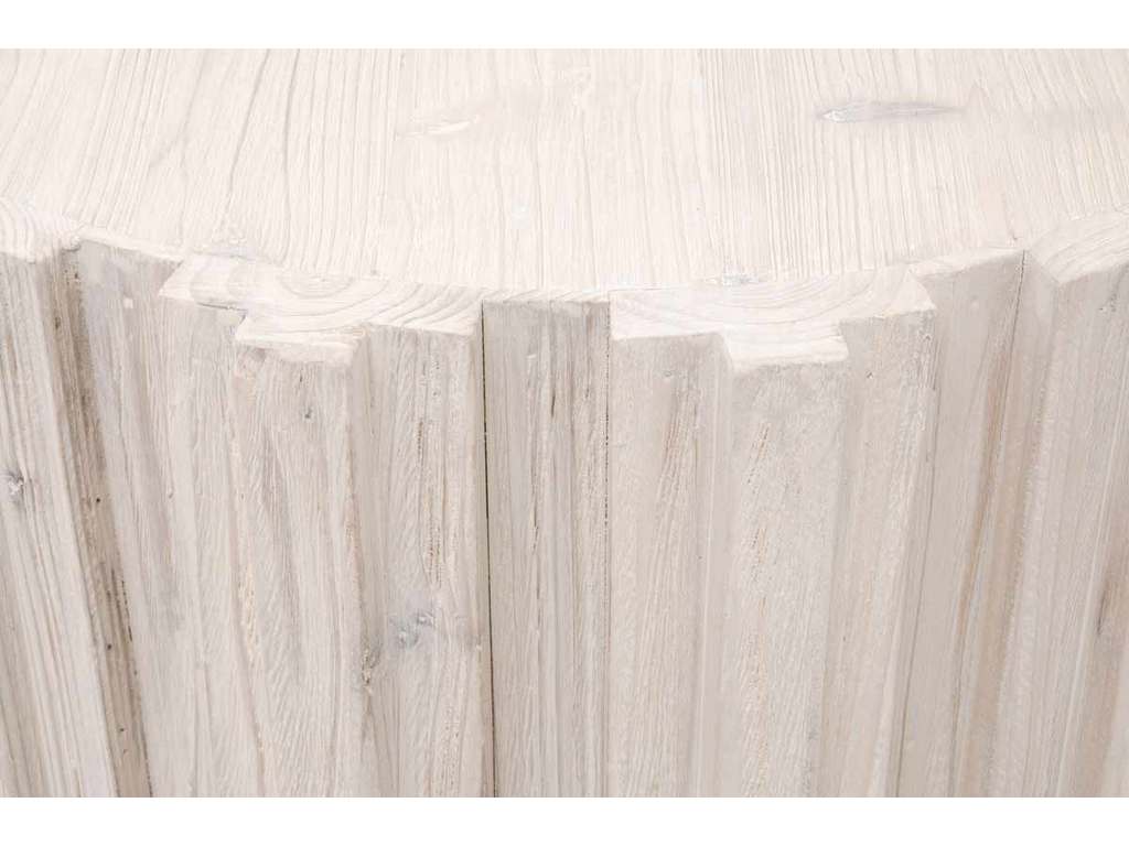 Product Description: Essentials for Living 8105.WW-PNE Roma End Table in White Wash Pine - Reclaimed Pine Wood. Round Shape with Decorative Wood Fluting. Plinth Base.
