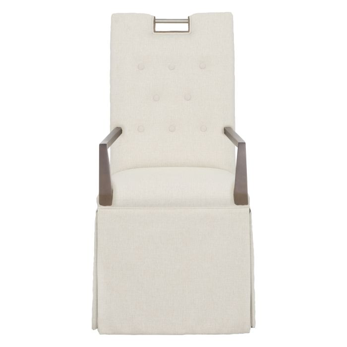 Product Description: Fairfield 1267-04 Nickel Metal Pull Tall Button Back Skirted Arm Chair - Skirted arm chair with a tall button back design and a nickel metal pull accent. Upholstered for comfort and style, suitable for formal dining or as an accent piece.