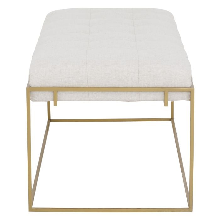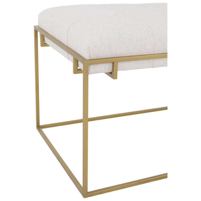 Product Description: Fairfield 1609-52-6 Soren Rectangular Ottoman - The Soren series features square metal frame with floating biscuit tufted upholstery available in polished nickel and brushed brass finishes. Series features a pouf, rectangular, square and round ottomans.