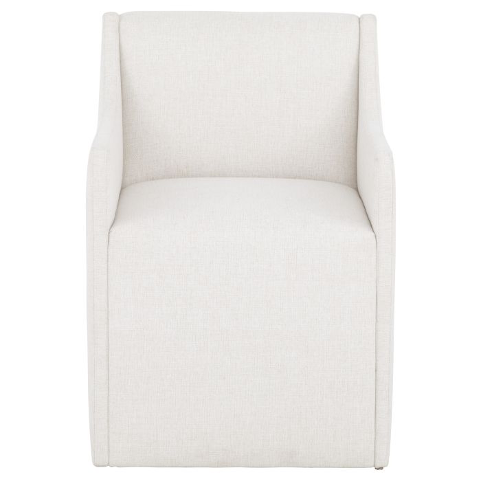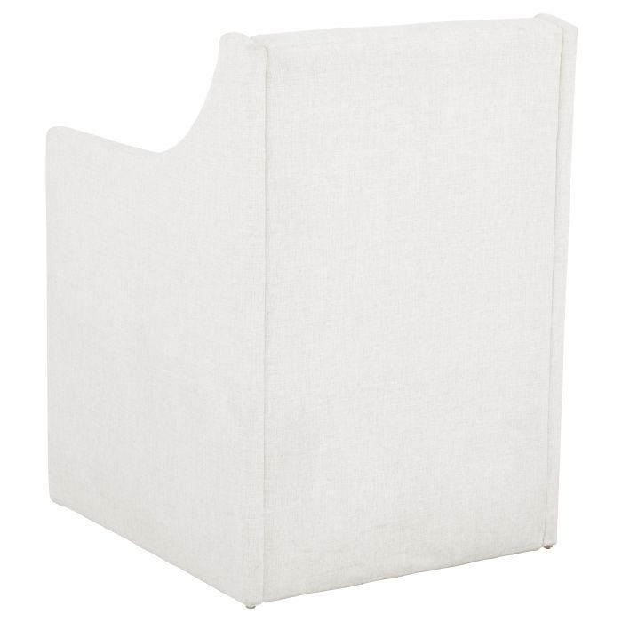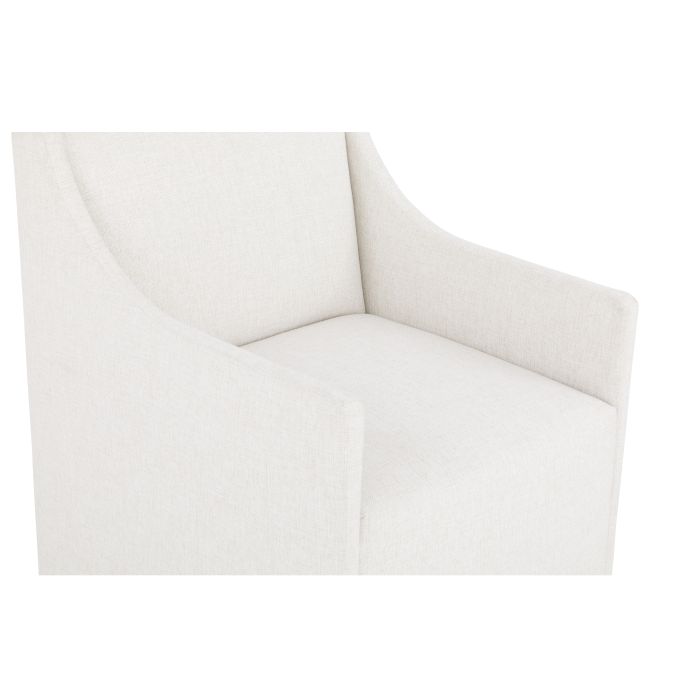 Product Description: Fairfield 2105-04 Halston Arm Chair - Seamless waterfall upholstered surface updates the wrap-around profile of this modern elegant dining chair offered in an arm and side. Available as a stationary dining chair or with casters for easy mobility.