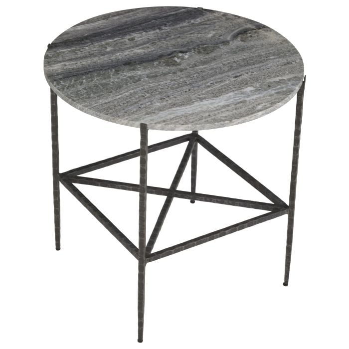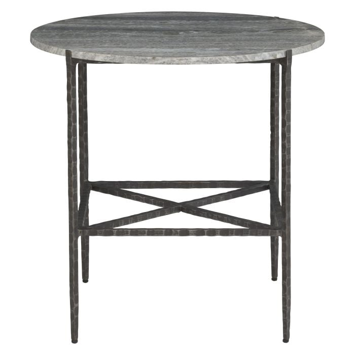 Product Description: Fairfield 8055-19-T Axel End Table Top Only - Hammered metal base with grey and brown honed marble top.