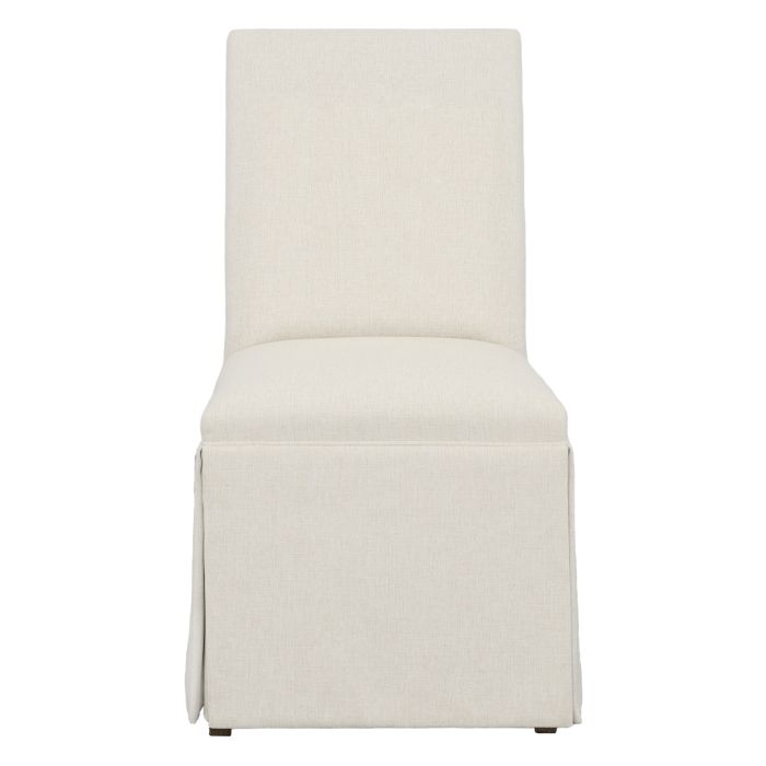 Product Description: Fairfield 1211-05-T Straight Short Back Skirted Dining Chair - Skirted dining chair with a straight back and short design for a sleek look. Upholstered in premium fabric for a touch of elegance. Ideal for modern dining rooms.