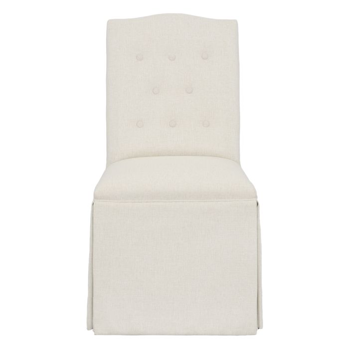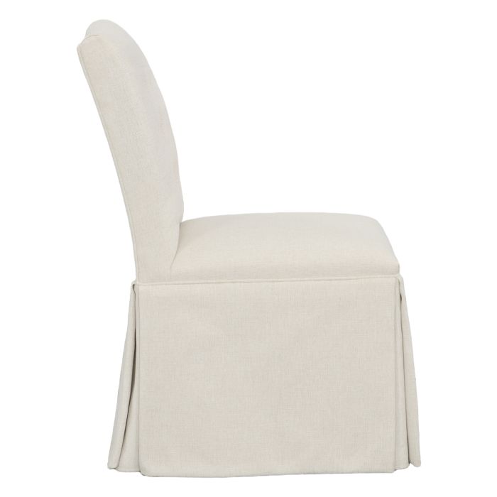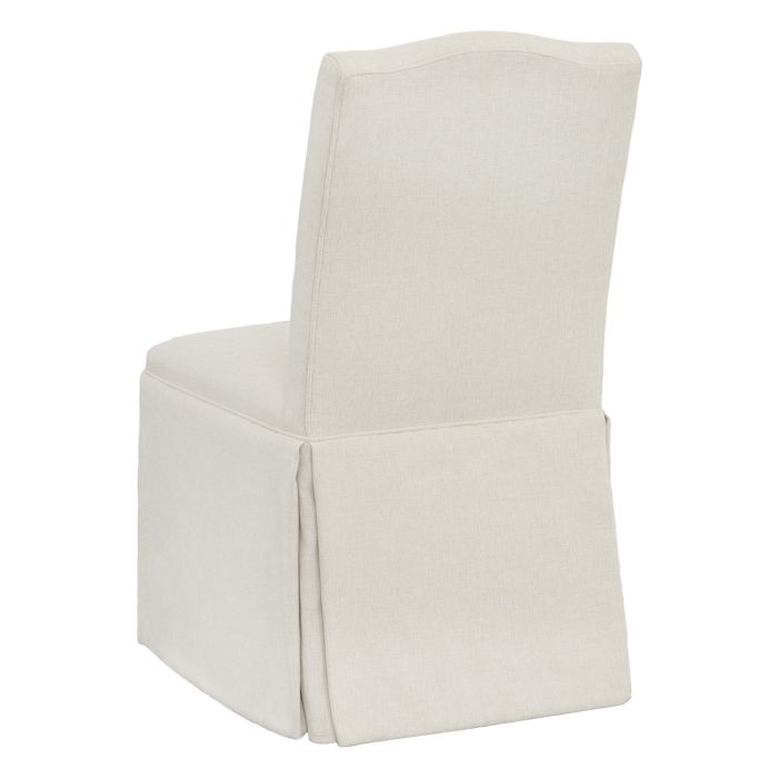 Product Description: Fairfield 1223-05-T Camel Short Back Skirted Dining Chair - Skirted dining chair with a short back design for a stylish touch. Upholstered in camel-colored fabric for a chic appearance. Perfect for modern dining spaces, enhancing the decor.
