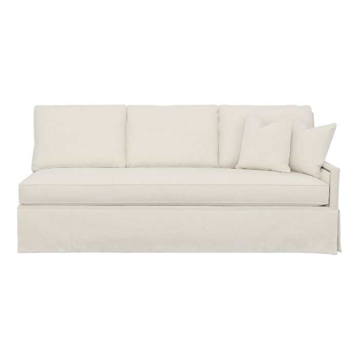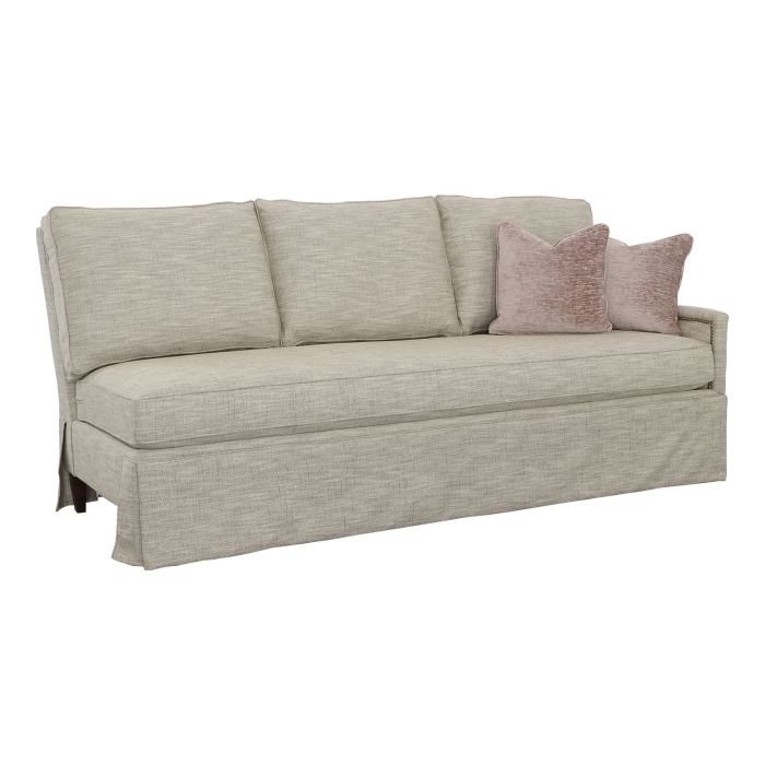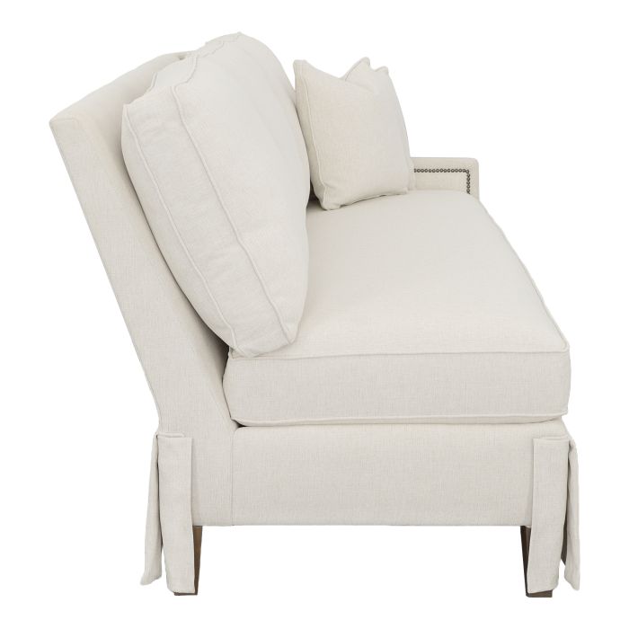 Product Description: Fairfield 2975-51 Kelly Skirted Right Arm Sofa - Kelly is an upholstery series with four cushion configurations available with boxed back or knife-edge back cushions and your choice of skirt or tapered leg with finish options. Kelly frames are standard with small nail head trim around the inside arm and available in multiple finish options.