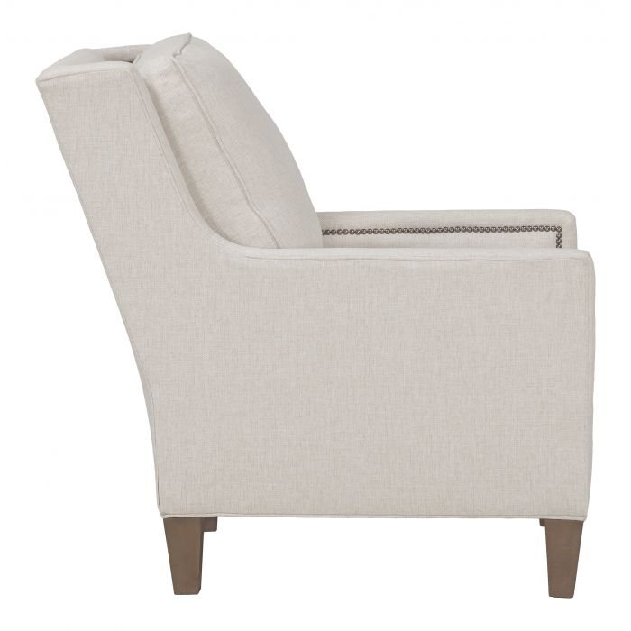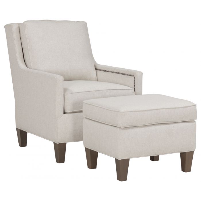 Product Description: Fairfield 2976-01 Kelly Lounge Chair with Tapered Leg - Kelly is an upholstery series with four cushion configurations available with boxed back or knife-edge back cushions and your choice of skirt or tapered leg with finish options. Kelly frames are standard with small nail head trim, available in multiple finish options around the inside arm of the sofas and chairs.