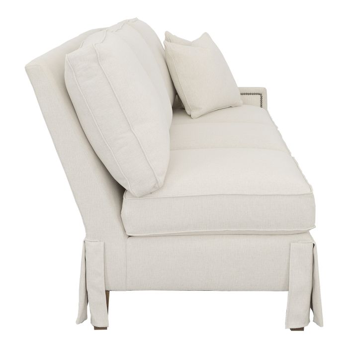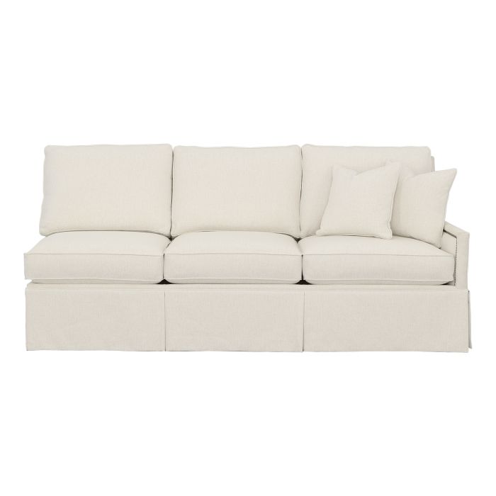 Product Description: Fairfield 2995-51 Kelly Skirted Right Arm Sofa - Kelly is an upholstery series with four cushion configurations available with boxed back or knife-edge back cushions and your choice of skirt or tapered leg with finish options. Kelly frames are standard with small nail head trim around the inside arm and available in multiple finish options.