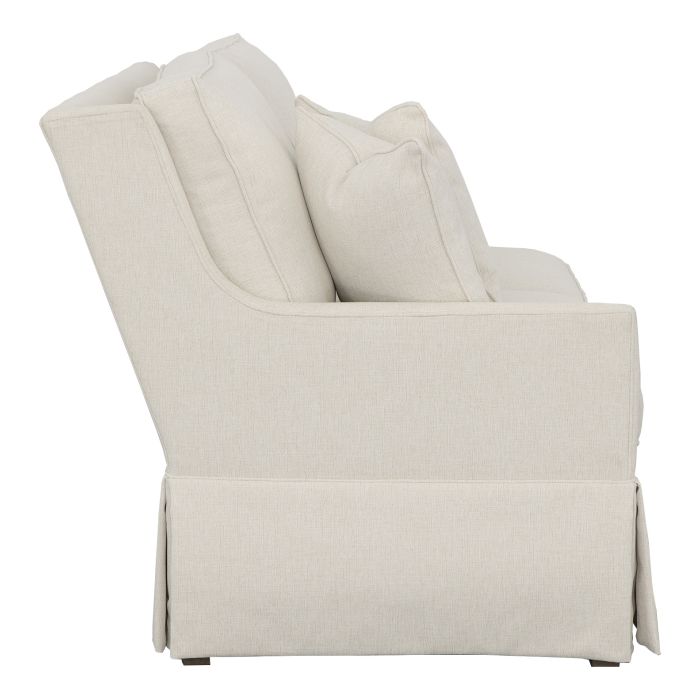 Product Description: Fairfield 2995-72 Kelly Skirted Left Arm Loveseat - Kelly is an upholstery series with four cushion configurations available with boxed back or knife-edge back cushions and your choice of skirt or tapered leg with finish options. Kelly frames are standard with small nail head trim around the inside arm and available in multiple finish options.