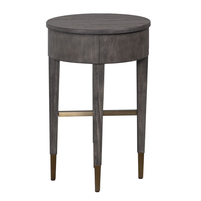 Product Description: Fairfield 4160-88 La Jolla Drink Table - La Jolla blends the style and functionality of high-level design with the performance and commercial-grade durability of laminate. The collection features occasional pieces in transitional silhouettes with antique brass details and finished in both Scrubbed and Fumed Oak.