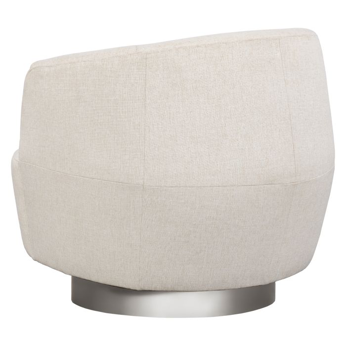 Product Description: Fairfield Furniture 6037-01-2 Dhalia Lounge Chair, Nickel Metal Base - Dahlia Inspired by sleek, mid-century styling, our Dahlia chair features a convex shaped exterior frame. A curved back and sloped arms frame Dahlias chic seat supported by a smoothly rotating base in either custom finished ash wood, nickel metal finish, or brass metal finish.