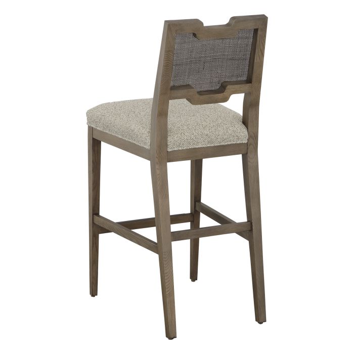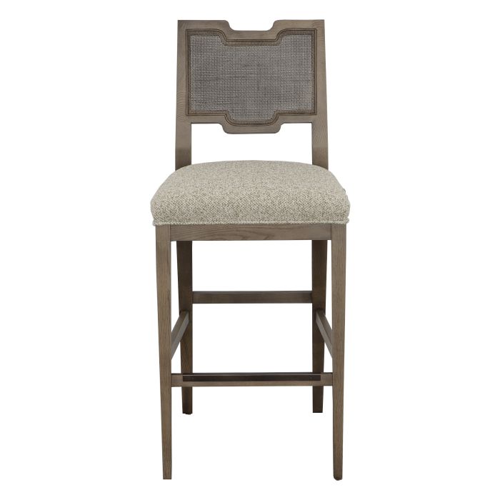 Product Description: Fairfield 6100-07 Harlow Bar Stool - The Harlow series blends the architectural elements of the Art Deco movement with the natural materials of a cane back.