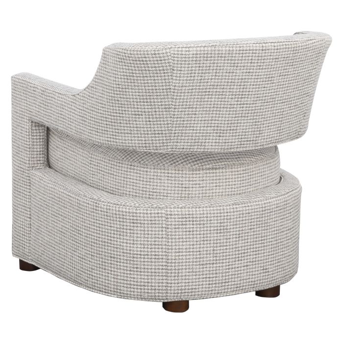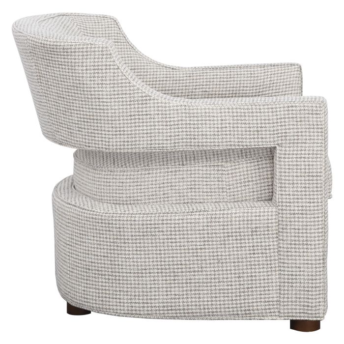 Product Description: Fairfield 6199-01 Phoebe Lounge Chair - Upholstered in a soft fabric with a cushioned seat for comfort. Features a curved backrest and slim legs for a contemporary touch. Perfect for dining or as an accent chair.