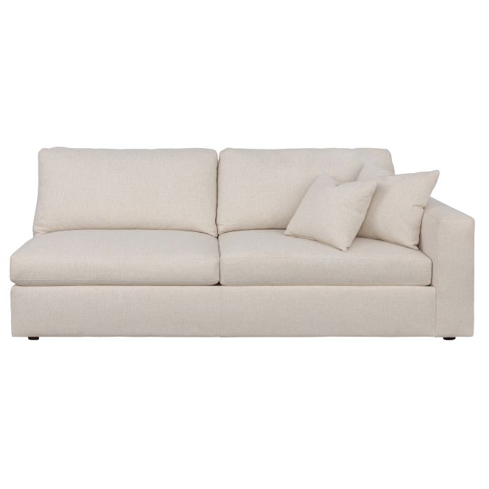Product Description: Fairfield 6329-51 Libby Langdon Francis Right Arm Sofa, Two Backs over Two Seats - The Francis sectional is a large and luxurious group with generous proportion, yet the sleek lines and minimal cushions keep it from feeling overstuffed or clunky. The wide track arm and weltless cushions give it a modern yet comfortable look. The Francis sectional has a clean minimal silhouette and is the perfect piece to cozy up into.