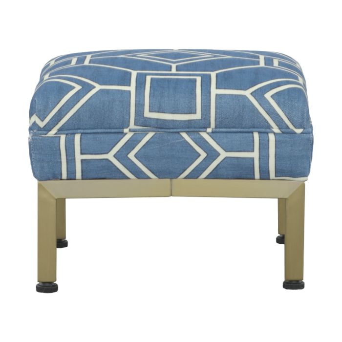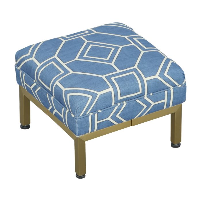 Product Description: Fairfield 6604-20-6 Libby Langdon Sheldon Ottoman - The Sheldon ottoman is low profile and designed to be a modern version of a traditional footstool, it's small in scale but meant to add comfort for someone who just wants a spot to rest their legs and might not want the height of a standard ottoman. It's difficult to find a chic, sleek low ottoman that has a contemporary look and the Sheldon footstool answers that challenge with it's simple, angular modern legs that come in Brushed brass or polished chrome. The upholstery is also very simple with straight lines so the Sheldon ottoman is a great candidate to showcase a bold geometric pattern which can add a dynamic look to a room design without overwhelming it.A pair of Sheldon ottomans can be the perfect cherry on top of any room design.