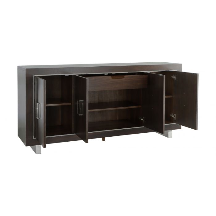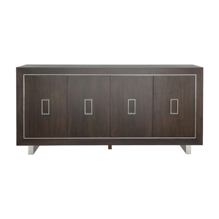 Product Description: Fairfield 6822-17 Libby Langdon Merritt Credenza - Its clean, simple lines - accentuated by the narrow polished nickel bead framing - proves that great design doesn't have to be complicated or fussy. The custom nickel hardware follows the rectangular shape of the doors and the mitered corners allow the walnut wood to really stand out. Keeping function in mind, the Merrit features an interior lined silver drawer and tons of room for storage, showing it is a study in simple elegance.