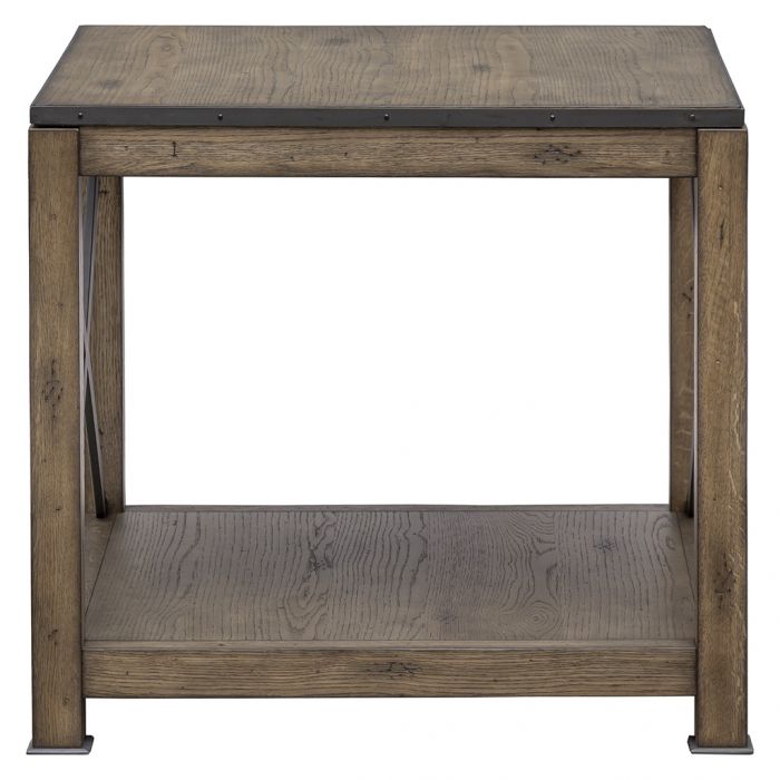Product Description: Fairfield 8063-94 Arcadian Square End Table - Reflecting the characteristics of rural architecture and pastoral charm, Arcadian is a collection of occasional, dining and home office pieces. Embracing the allure of imperfection, the pieces feature a heavily-distressed patina of scratches, knots and nicks in a natural, Burnished Oak finish.